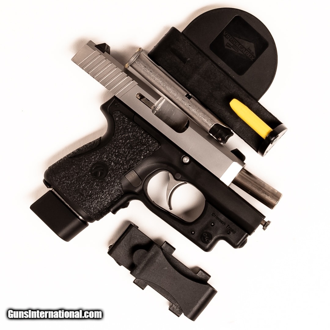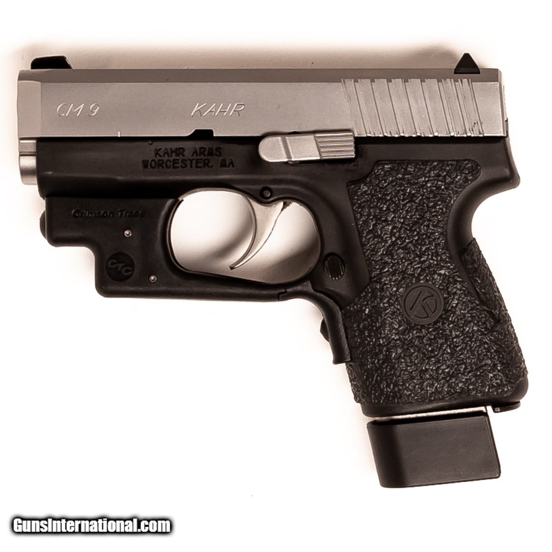 Description: Guns Listing ID: 638988 The Kahr Arms CM9 is a compact semi-automatic handgun chambered in 9mm. Affordable yet dependable, this polymer-framed pistol is an excellent option for concealed carry and close-range self-defense. This CM9 features a Crimson Trace LaserGuard LG-437 and Talon grip tape. Purchase includes the original box, one 6-round magazine, one 7-round magazine, an IWB Versacarry Zerobulk holster, and a Versacarry single-stack magazine carrier. SOLD Manufacturer: KAHR Model: CM9 Caliber Info: 9MM LUGER (9X19 PARA) Condition: Used - Certified Barrels: 3 barrel Finish: TWO-TONE |