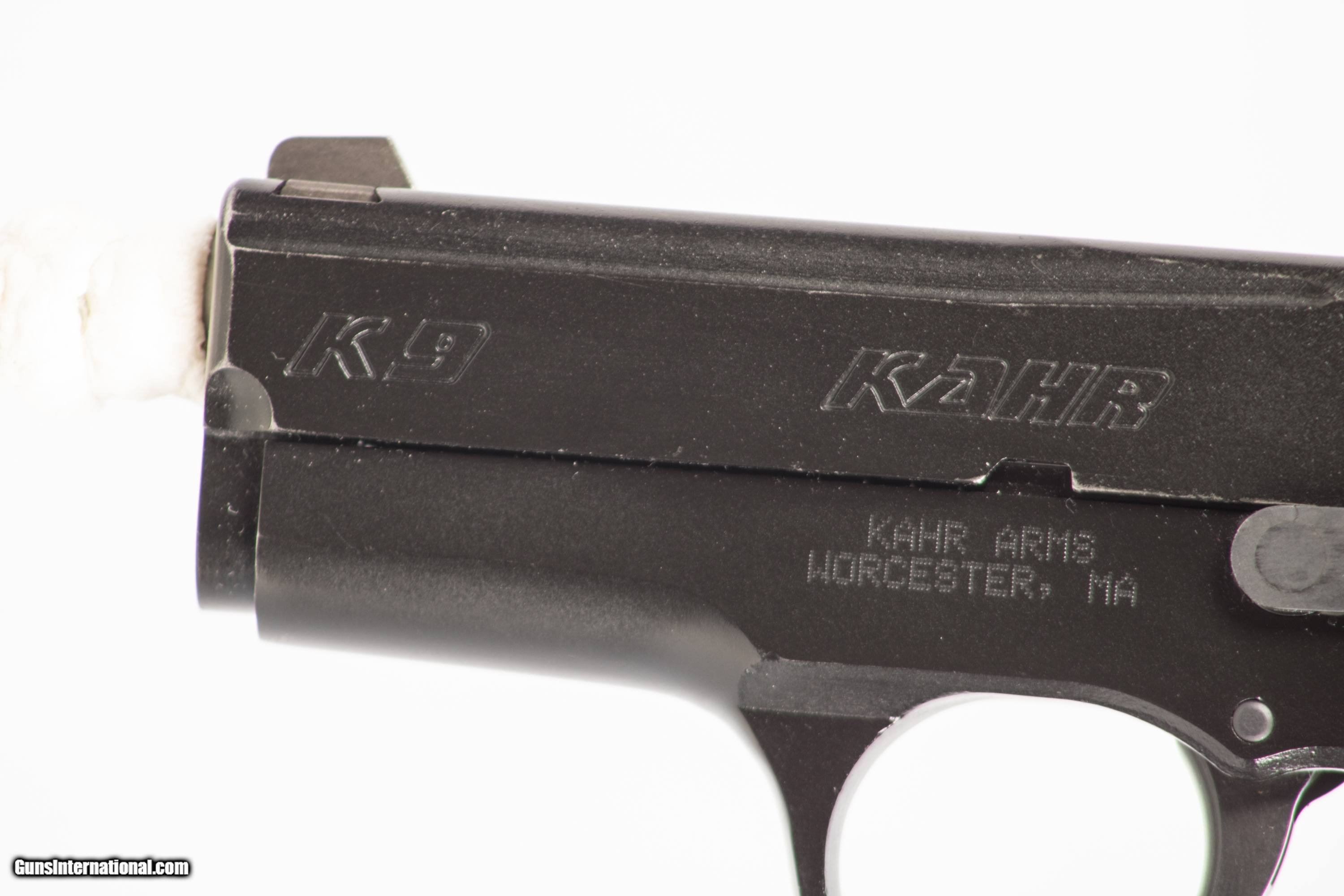 Description: Kahr K9 chambered in 9 mm with a 3 1/4 inch barrel bright & shiny bore and case. This gun is in excellent condition and is covered by Dury's Lifetime Warranty.