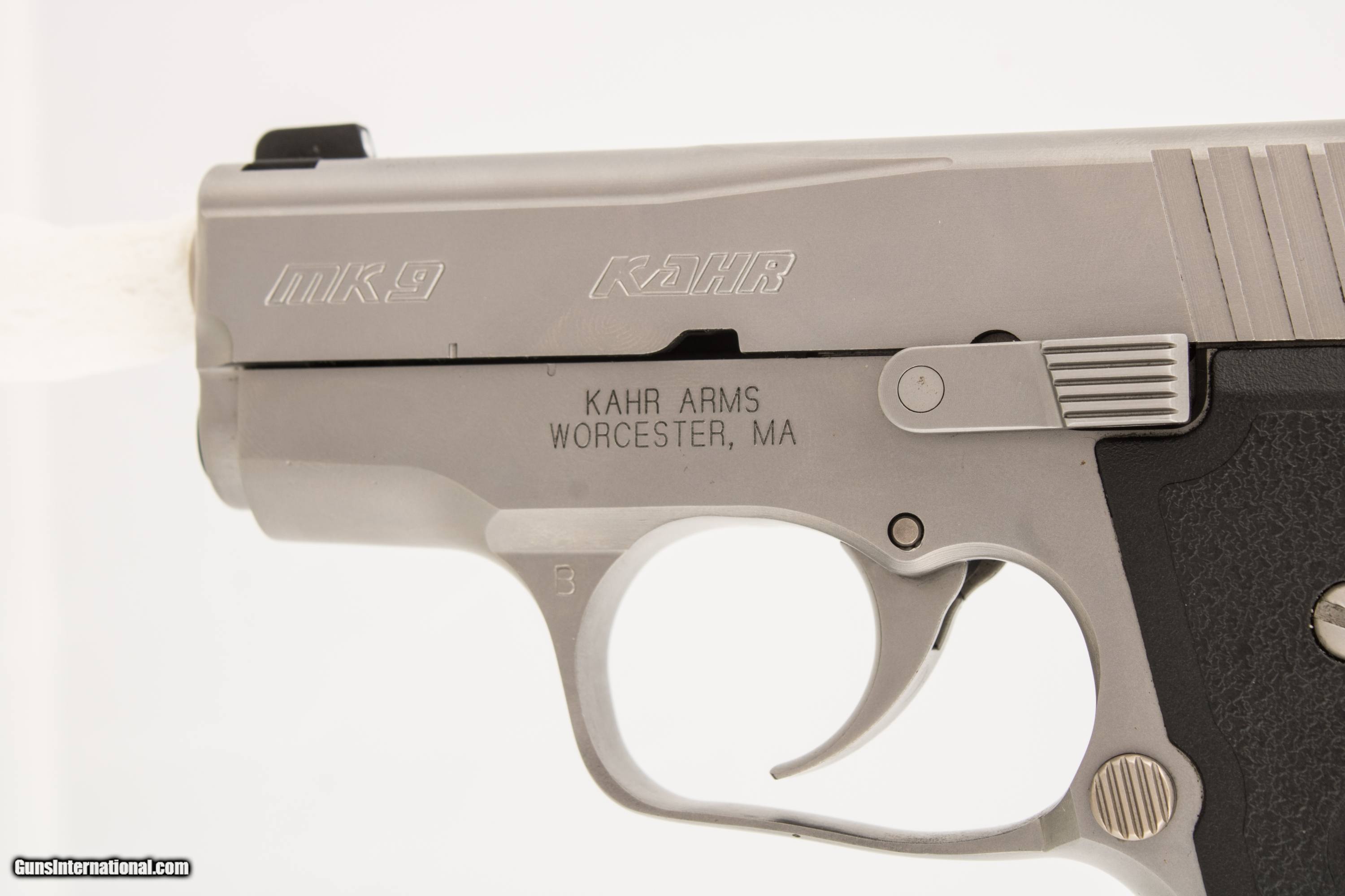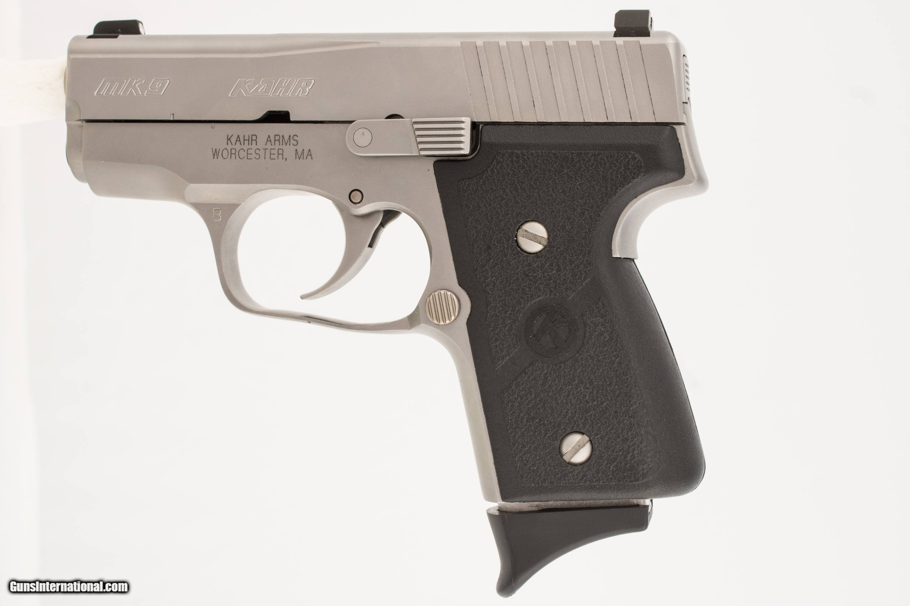 Kahr MK9 chambered in 9 mm with a 2 3/4 inch barrel bright & shiny bore and extra magazine. This gun is in excellent condition and is covered by Dury's Lifetime Warranty.