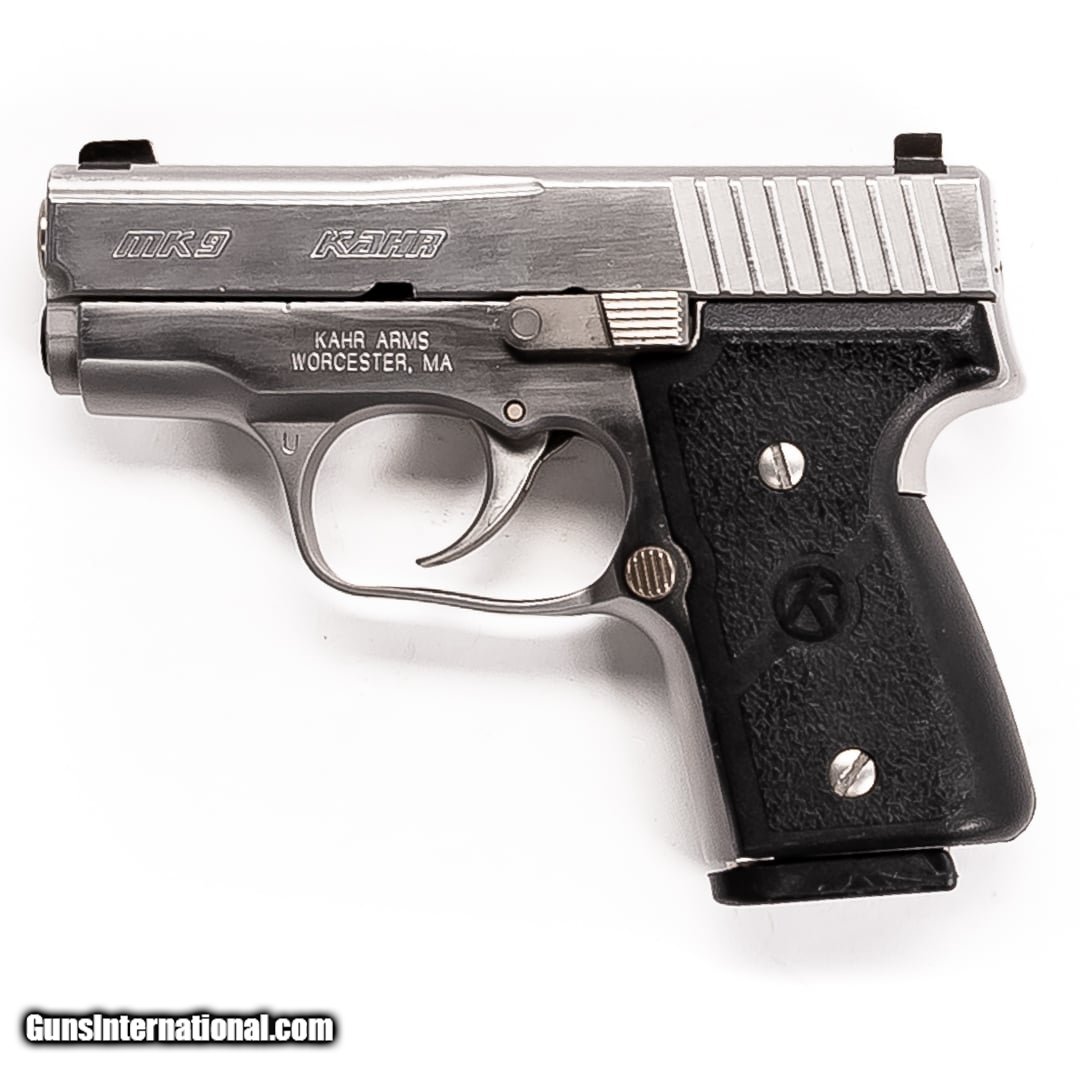 Description: Guns Listing ID: 84973 This MK9 Elite 03 is a high-quality semi-automatic pistol that‚‚s part of the Kahr Arms Premium Series. Crafted on a steel frame with laser engraving, this sub-compact pocket pistol sports a thin profile and delivers six rounds of 9mm. The polygonal rifled match-grade barrel aids in accuracy and the beveled magazine well makes for easier reloading. The MK9 Elite is innovatively designed, solidly constructed, and well-suited for concealed carry. This double-action pistol ships with two 6-round magazines SOLD Manufacturer: KAHR Model: MK9 ELITE 03 Caliber Info: 9MM LUGER (9X19 PARA) Condition: Used - Certified Barrels: 3 BARREL Finish: STAINLESS |