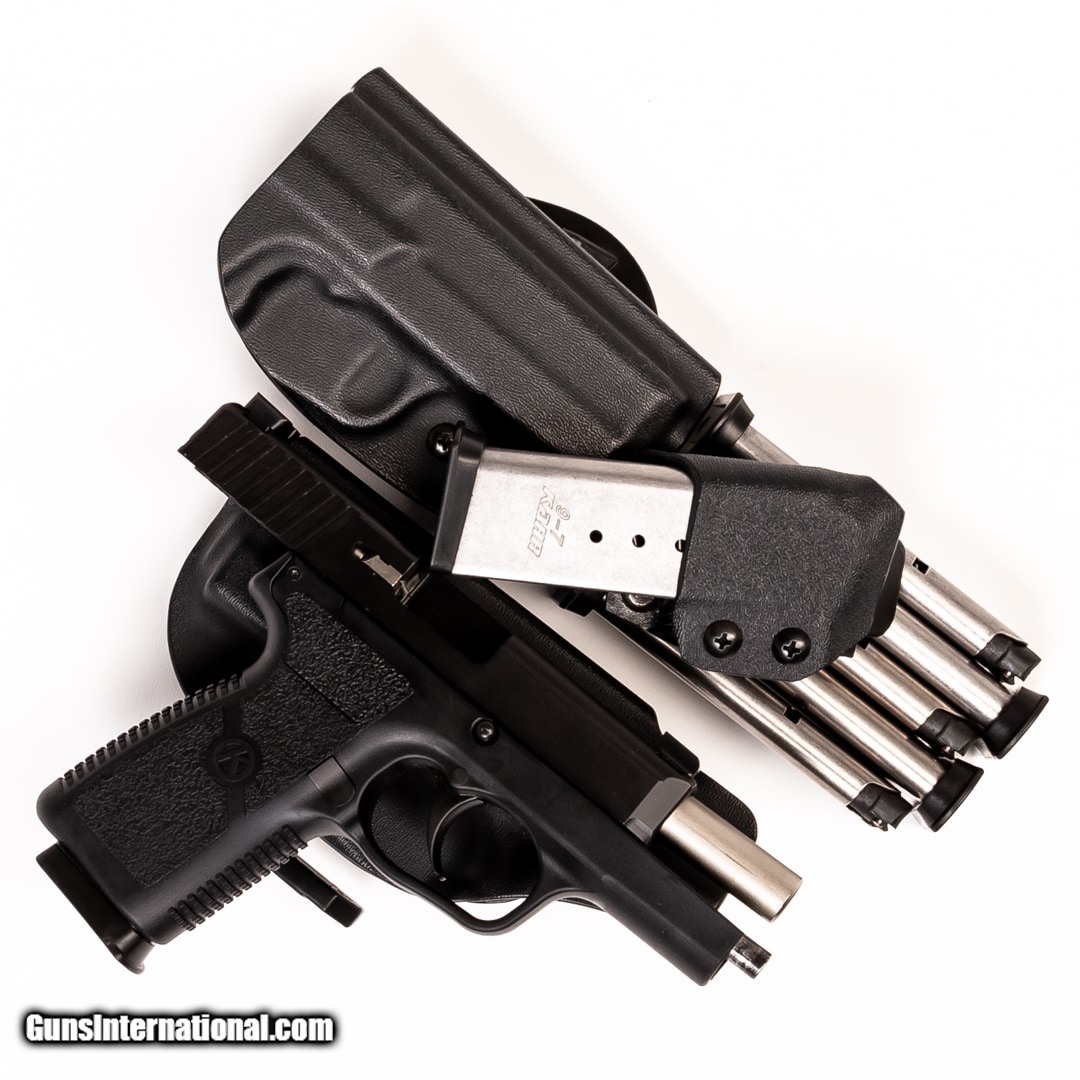 Description: Guns Listing ID: 488636 Whether you‚‚re a seasoned shooter or beginner, the Kahr Arms P9 is an excellent option for everyday carry. Less than an inch wide and only 5.8\" long, this pistol is comfortable to carry all day. The original case, seven 7-round magazines, three mag springs, three follower blocks, one OWB holster, one OWB magazine holster, one IWB holster, Truglo H3 sights, and a manual are included SOLD Manufacturer: KAHR ARMS Model: KAHR P9 Caliber Info: 9MM LUGER (9X19 PARA) Condition: Used - Non-Certified Barrels: 3.3 BARREL Finish: BLACK |