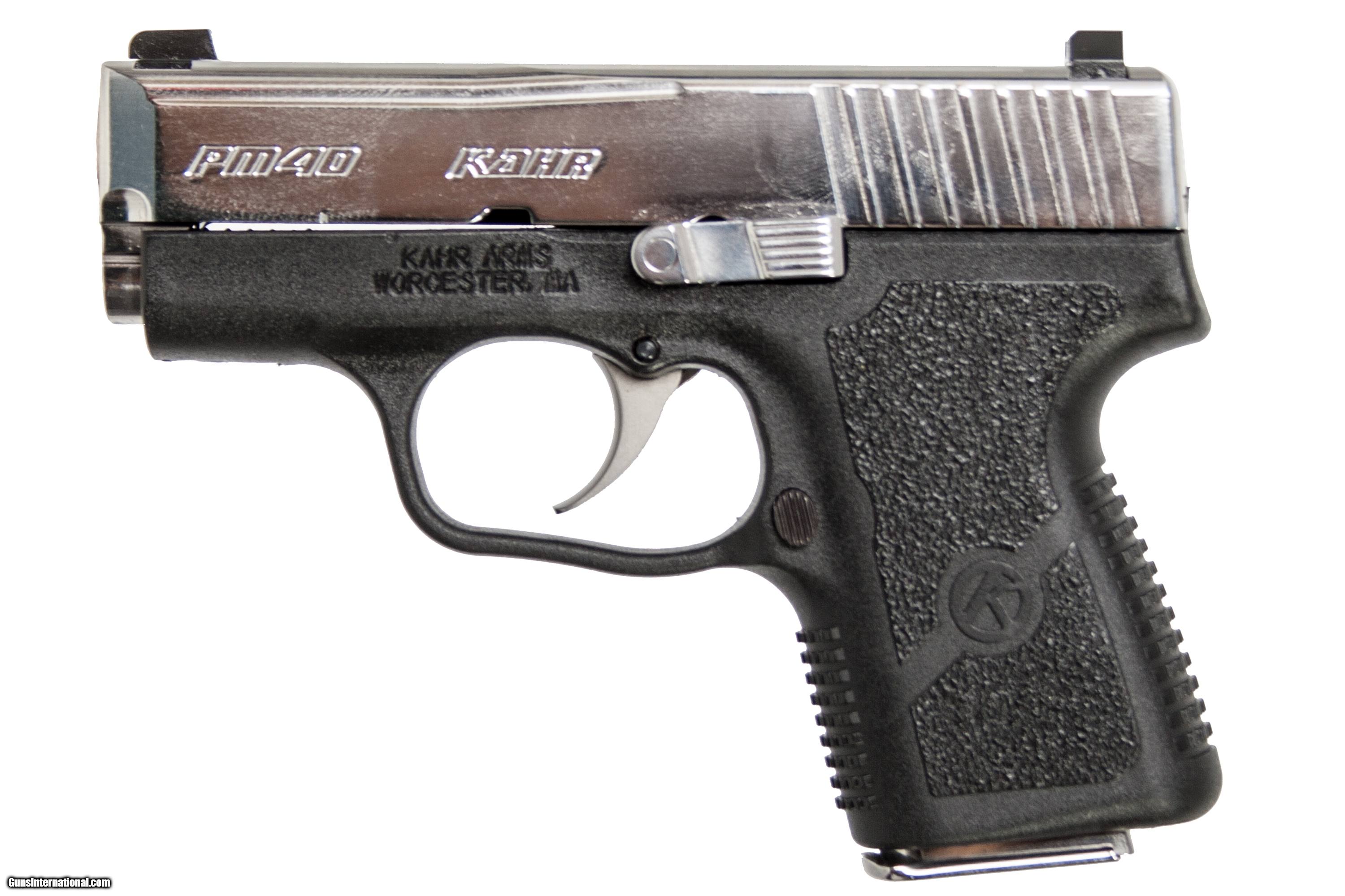 Description: Kahr PM40 chambered in 40 S&W with a 3 inch barrel. This gun is in excellent condition and is covered by Dury's Lifetime Warranty. SOLD Manufacturer: Kahr Model: PM40 Caliber Info: 40 S&W Barrels: 3 inch |