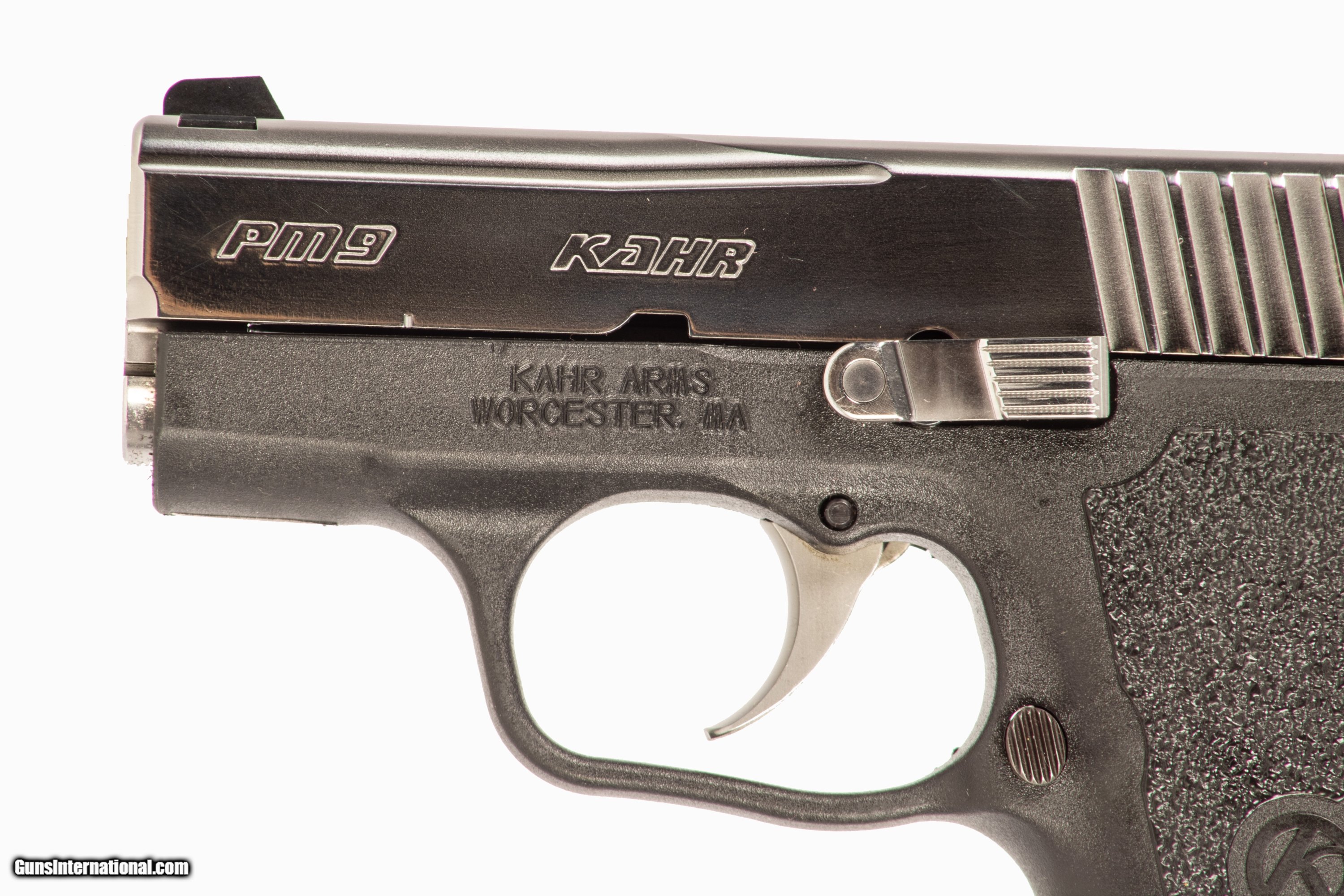 Kahr PM9 chambered in 9mm with a 3 inch barrel and a bright & shiny bore. This is a used firearm that is in excellent condition and is covered by Dury's Lifetime Warranty.