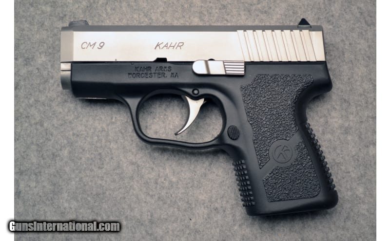 Description: The lightweight and slim profile of the Kahr® Arms CM9 Semi-Auto Pistol makes it an excellent concealed carry pistol. The CM9 operates with a DAO cocking trigger. The Kahr Arms CM9 Semi-Auto Pistol has a polymer frame with a non-slip, textured grip, and a stainless steel slide. The rear sight is dovetailed to the slide and drift adjustable; the polymer front sight is pinned to the slide. The CM9 Semi-Auto Pistol comes with one 6-round flush magazine, holster, original factory box, and manual. 9mm Luger SOLD Barrels: 3 Weight: 1 lb Item Location: christiana |