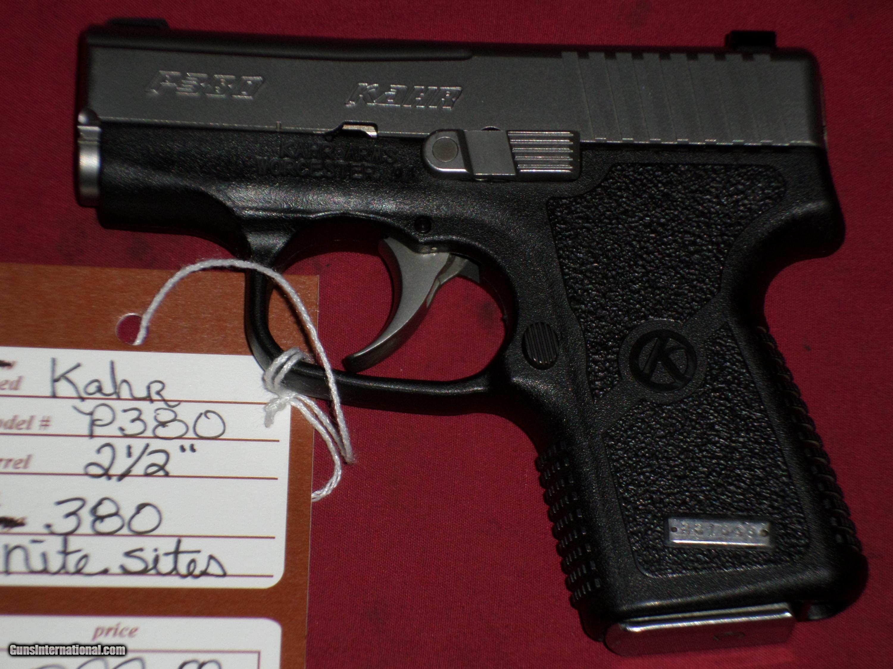 Description: SOLD For sale, Kahr P380 Polymer frame, with stainless slide. Factory night sights. Like new, unfired in the box. To see more of our inventory, visit deerhunterguns,com We collect 7% sales tax for Florida sales. We accept MC, Visa and Discover, no AmEx. No Sales to California. Like us on Facebook: Deer Hunter Guns SOLD |