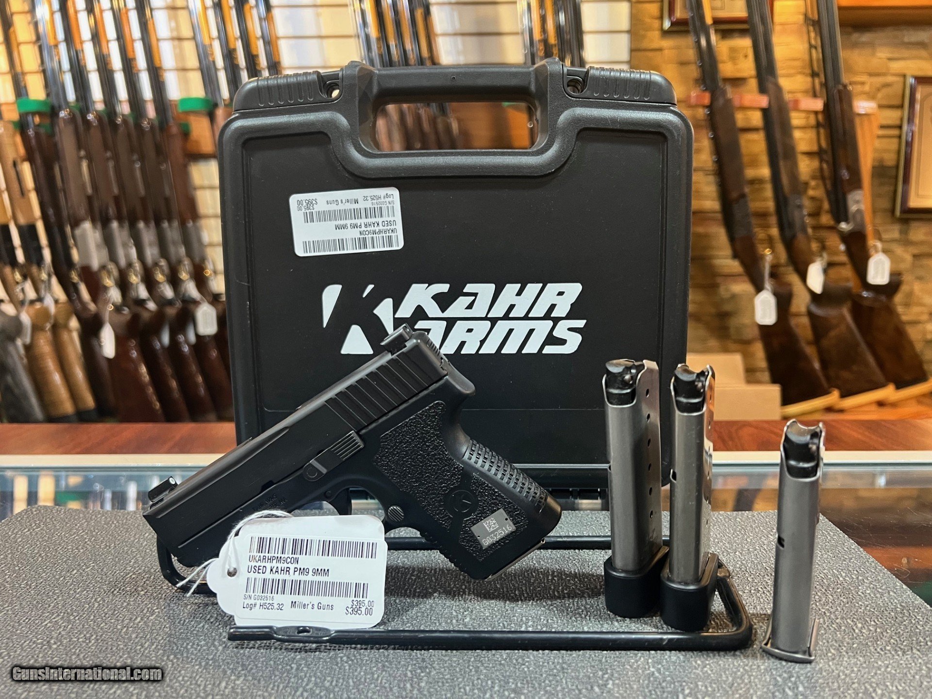 Description: USED Kahr PM9 9mm (4) magazines included Factory case included SOLD Handgun Caliber: 9x19mm Parabellum (9mm Luger, 9x19mm NATO) Manufacturer: Kahr Model: PM9 Serial Number: G032516 Condition: VERY GOOD |