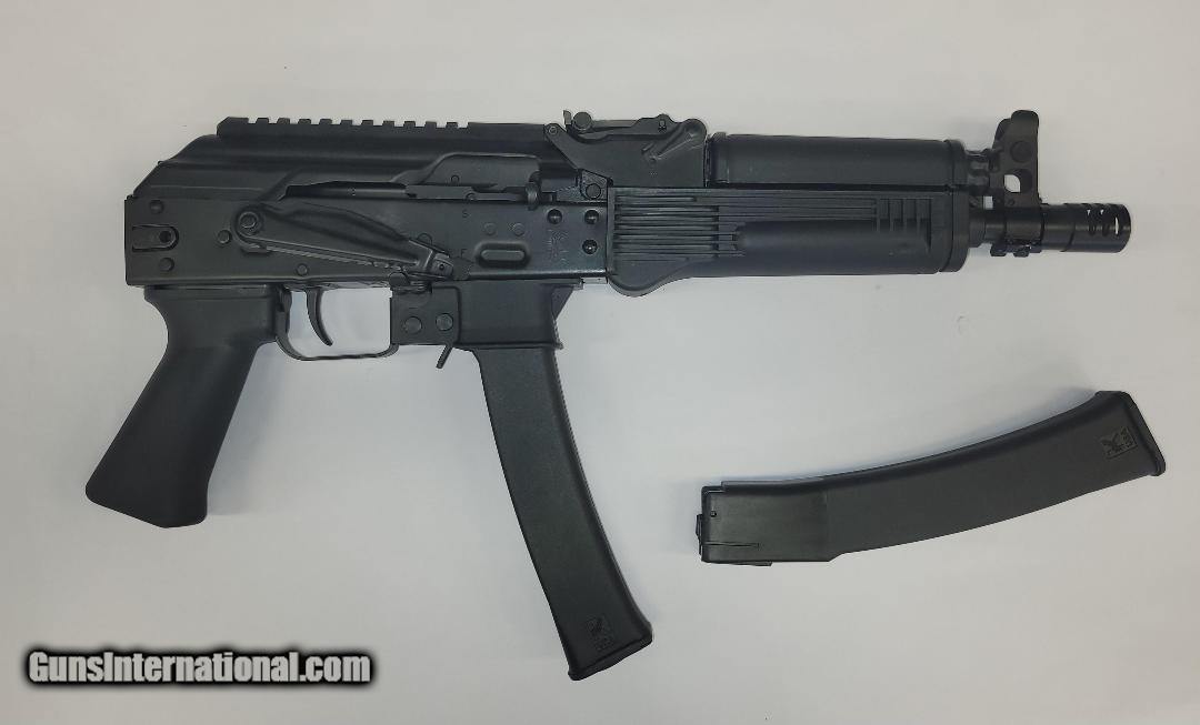 Description: Guns Listing ID: 1457619 The Kalashnikov USA™ KP-9 is our civilian legal, 9mm semi-auto only AK style pistol based upon the Russian Vityaz submachine gun. Proudly made in the U.S.A., the KP-9 offers a variety of options for the Vityaz enthusiast. With its hinge block and quick detach mount at the rear of the receiver, the KP-9 comes ready for conversion into a short-barreled rifle (SBR) under the provisions of the National Firearms Act (NFA) of 1934.* The KP-9 pistol features a closed bolt blowback design that incorporates an out-of-battery safety mechanism so the gun cannot fire unless the bolt is fully closed. The KP-9 also features feed ramps that are specially designed to reliably chamber jacketed hollow point bullets. This semi-auto pistol accepts 30-round and 10-round Kalashnikov USA™ magazines. The steel-lined polymer magazines feature a double-column, double-feed design inspired by the battle-proven magazines used in the PPS-43 submachine gun. The KP-9’s hinged top cover has an attached Picatinny rail. The muzzle features 1/2 inch x 28 suppressor-ready muzzle threads (and a shoulder) making it compatible with most US muzzle devices and suppressors. It comes from the factory with a flash suppressor installed. SOLD Manufacturer: KALASHNIKOV USA Model: K9 Caliber Info: 9MM LUGER (9X19 PARA) Condition: Used - Non-Certified Barrels: 8 BARREL Finish: BLACK |