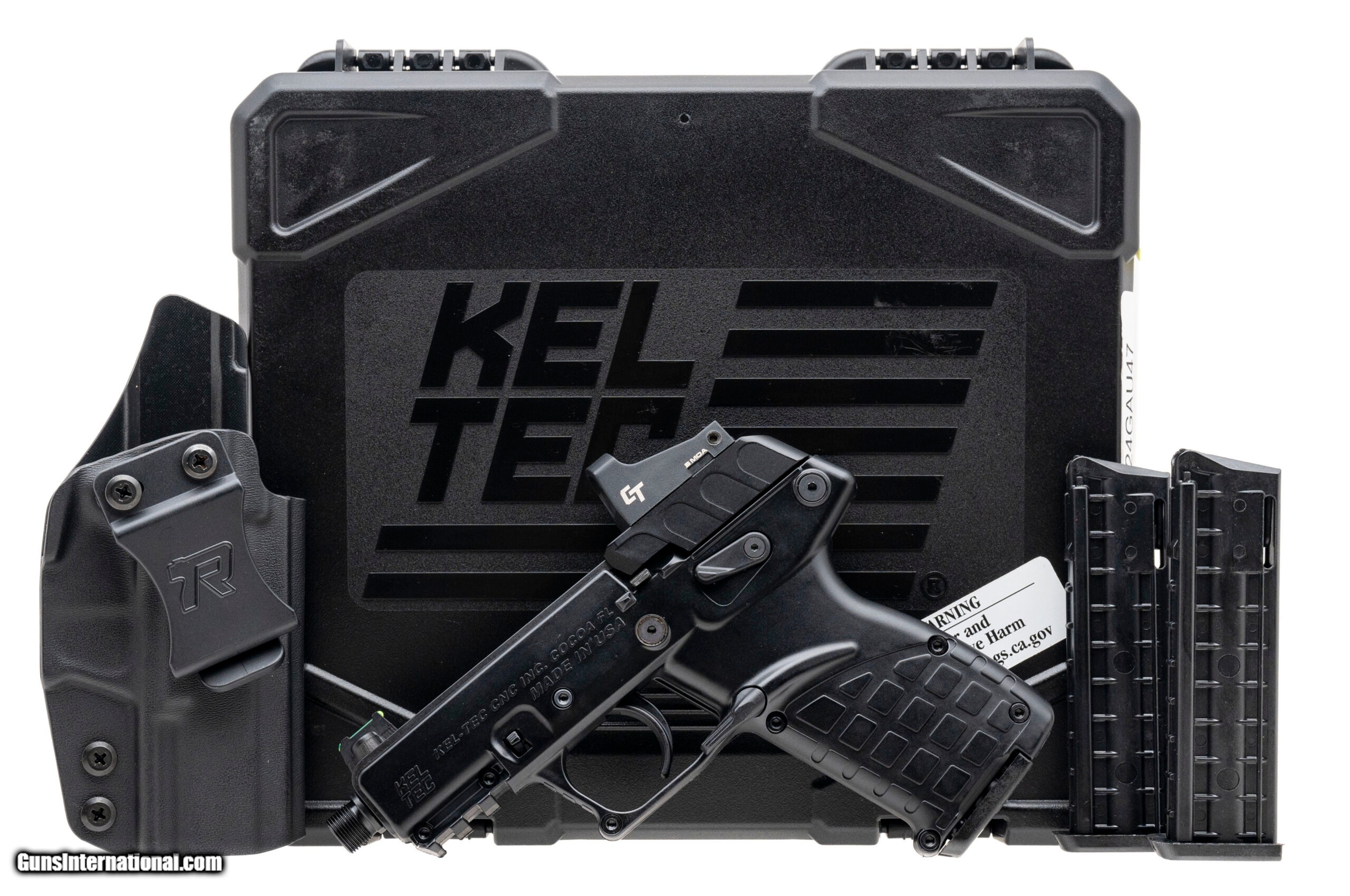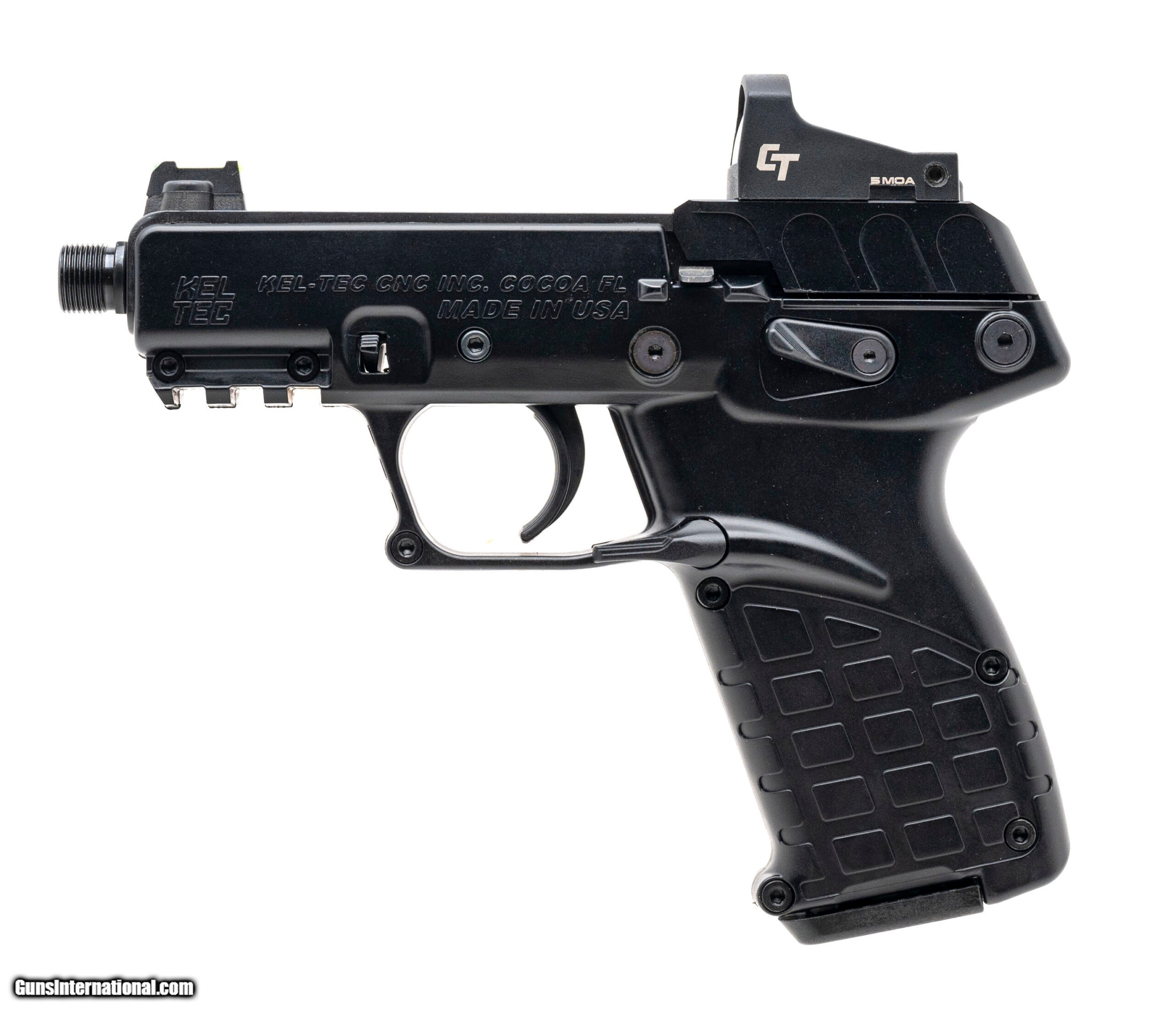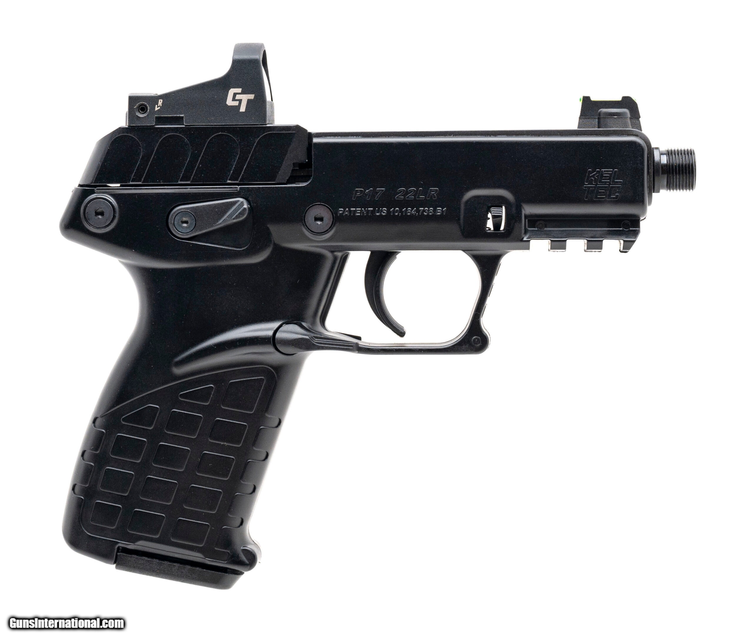 Description: "Kel-Tec P17 Pistol .22 LR. Compact Semi-automatic Single Action Pistol with a 3.8"" Threaded Barrel. Black Finish, Polymer Frame, Fiber Optic Front sight, and an Optic Ready Slide w/Crimson Trace Red Dot Optic. 3-16rd Magazines and a Holster. NEW. UPC: 640832009408 (STOCK PHOTO) SOLD |