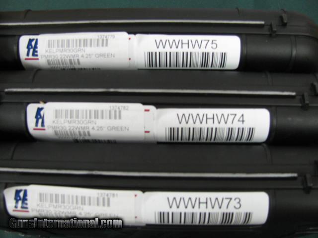 Description: 6153 Kel Tec PMR 30 22 caliber MAGNUM, FOREST GREEN 30 round magazine, 2 magazines, 3 high viz sites, 13.6 OUNCES, 6 oz loaded magazine of 30 rounds. NEW IN BOX this and #6154/6155 have CONSECUTIVE SERIAL NUMBRERS,each or 3 times the money --210 602 6360-NEW IN CASE. SOLD |