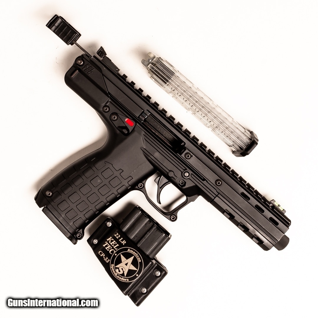 Description: Guns Listing ID: 608820 Outrageously fun for range use and plinking, the Kel-Tec CP33 is a rimfire pistol with an incredible capacity for more fun and fewer reloads. If you’re looking for a new recreational shooter, this is a hard option to beat! This CP33 includes two magazines. SOLD Manufacturer: KEL-TEC Model: CP33 Caliber Info: .22 LR Condition: Used - Certified Barrels: 5.5 BARREL Finish: BLACK |