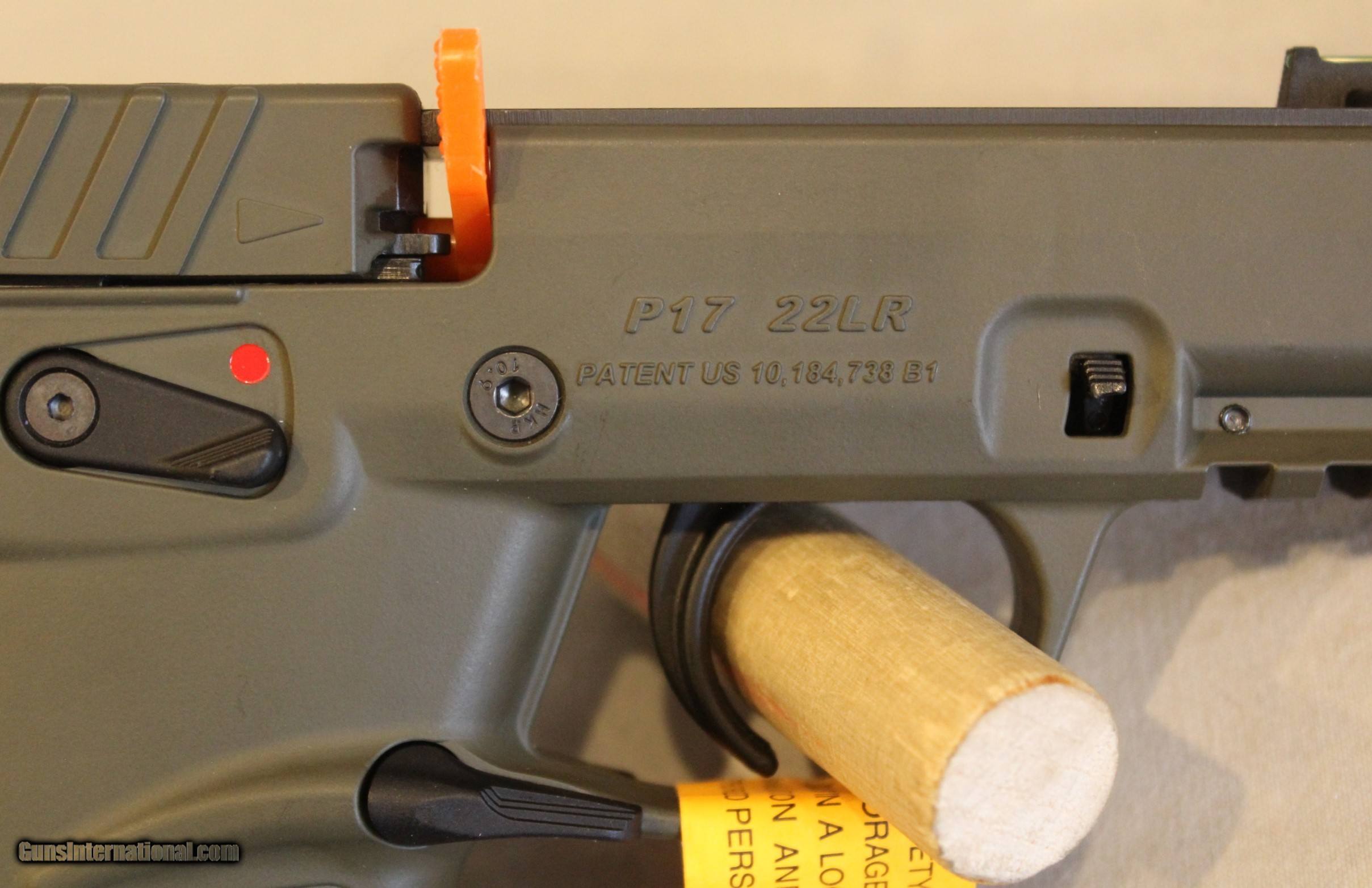 Description: The P17 is concealable for pretty much anyone. Its size, weight and caliber are the perfect combination for training a new shooter. Featuring a threaded barrel; Picatinny-style accessory rail; ambidextrous safety and an ambidextrous magazine release. Includes three 16rd magazines.