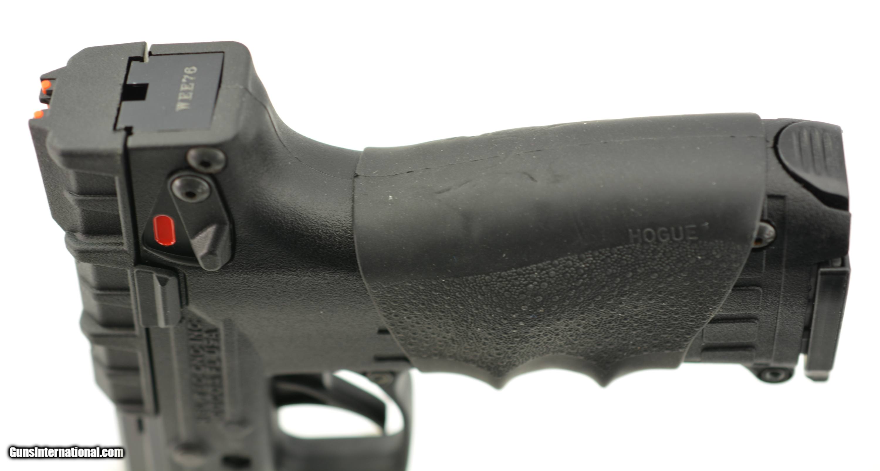 Description: Serial #WEE76, .22 WMR, 4 1/4" barrel with an excellent, bright bore. This lightweight pistol features a black polymer frame with accessory rail, and a composite metal and polymer slide that has green and orange fiberoptic sights. The pistol is fitted with a Hogue neoprene grip-adapter, and is housed in the original black Kel-Tec plastic case with two 30 rd. magazines, and a trigger lock. This is an innovative little rimfire pistol, and is in virtually new condition. FFL SOLD |