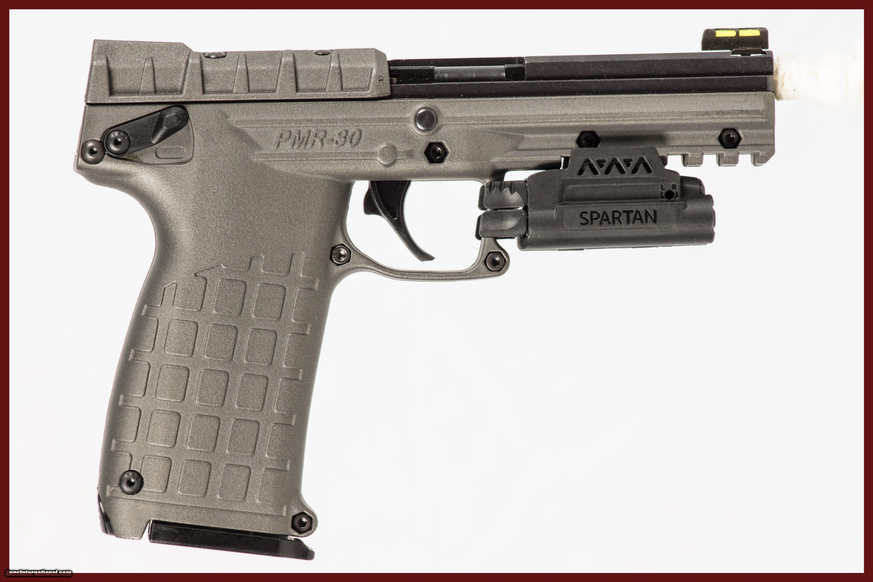 Kel-Tec PMR-30 chambered in 22 mag with a 4 1/4 inch barrel bright & shiny bore Spartan light/laser combo and 1 extra magazine. This gun is in excellent condition and is covered by Dury's Lifetime Warranty.