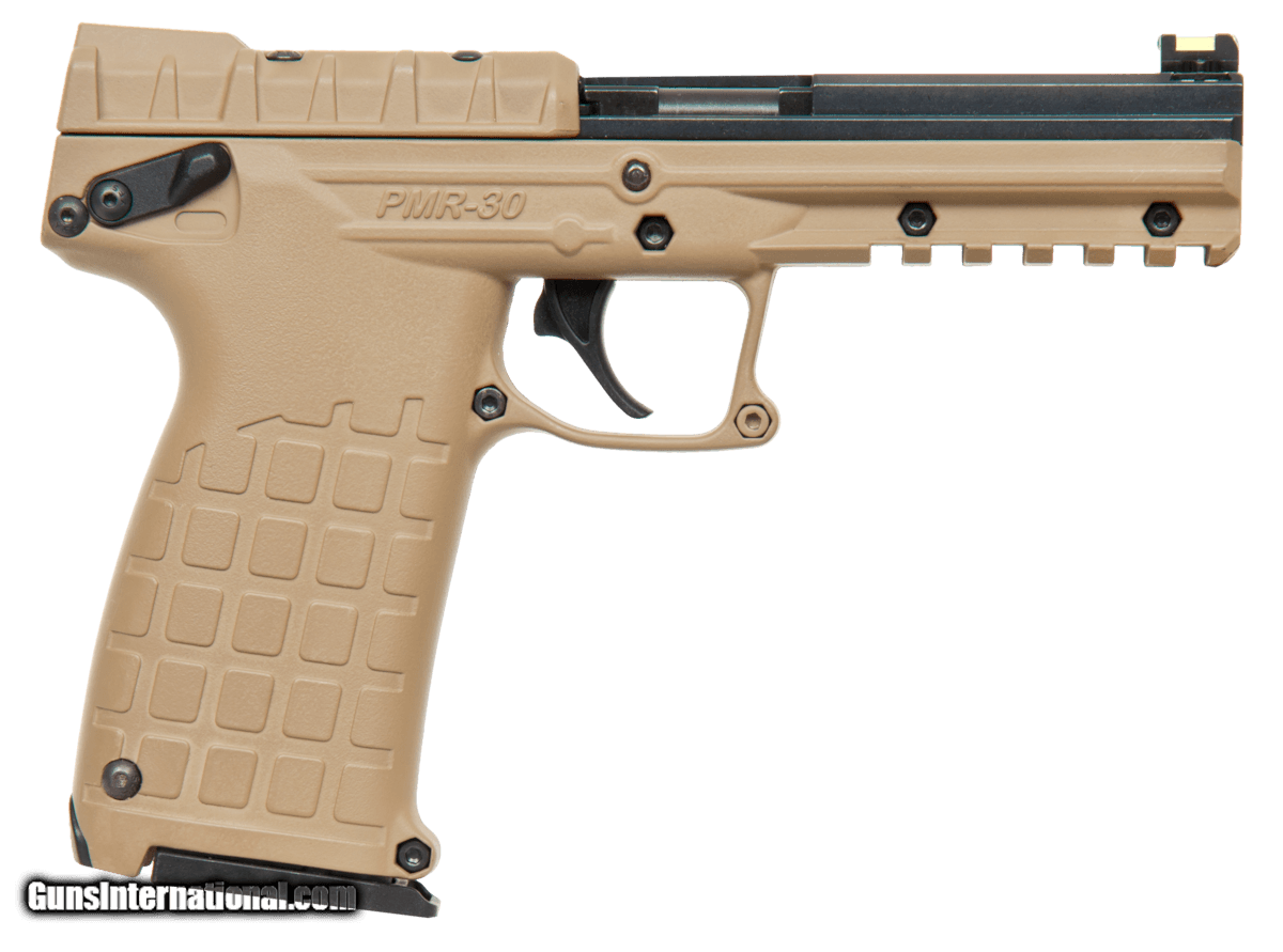 Description: Guns Listing ID: 50987 The Kel-Tec PMR-30 is a semi-automatic pistol chambered in 22 WMR. This high capacity pistol has an unloaded weight of just 14 ounces and a 4.3\" barrel. The PMR-30 is adorned with a rear fiber optic sight and a Hi-Viz adjustable front-sight as well as an integrated picatinny rail allowing users to attach their choice of accessories. Details Action Single - Caliber 22 Winchester Magnum - Barrel Length 4.3\" - Capacity 301 - Safety Ambidextrous - Grips Tan Polymer - Sights Fiber Optic - Frame Finish Tan Cerakote - Frame Material 7075 Aluminum Alloy - Barrel Type 4140 Steel - Slide Description Black 4140 Steel SOLD Manufacturer: KELTEC Model: PMR-30 Caliber Info: .22 WMR Condition: new Barrels: 4.3 BARREL |