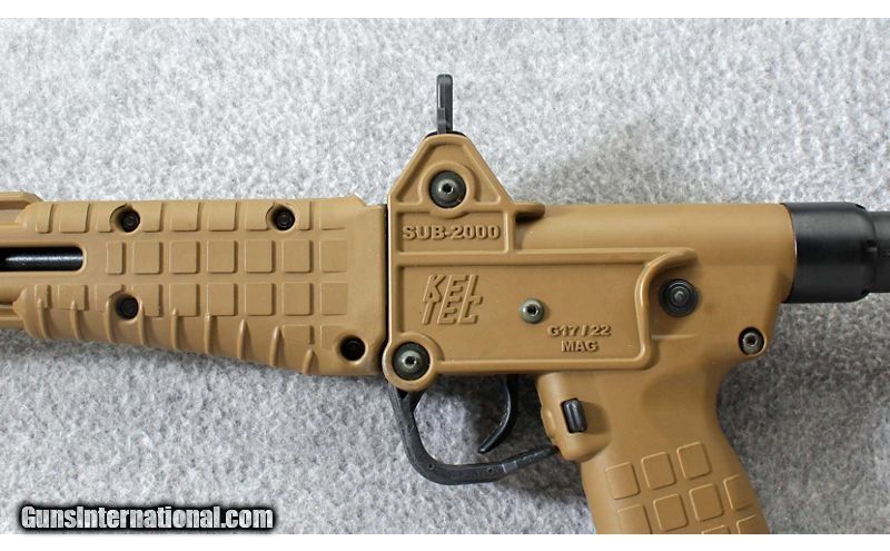 Description: The Kel-Tec SUB-2000 9mm Carbine uses Glock 17 / 22 compatible magazines. Comes with one 10 round magazine. It can be folded to an easy to pack 16.25 inch package. The SUB-2000 has an easy to reach safety behind the trigger guard. The polymer used in the manufacturing of the Kel-Tec SUB 2000 carbine is made of a modified glass reinforced Zytel. The SUB 2000 comes standard with two Picatinny rails and M-LOK slots on the fore end of the firearm for mounting various add-on accessories. The sights are adjustable for windage and elevation. 9mm Parabellum SOLD Metal Condition: Excellent Bore Condition: Excellent Barrels: 16.25 inch threaded barrel Stock Dimensions: Adjustable Weight: 4 lbs. 8 oz. Sights: Aperture rear sight with post front Item Location: Lehi, UT |