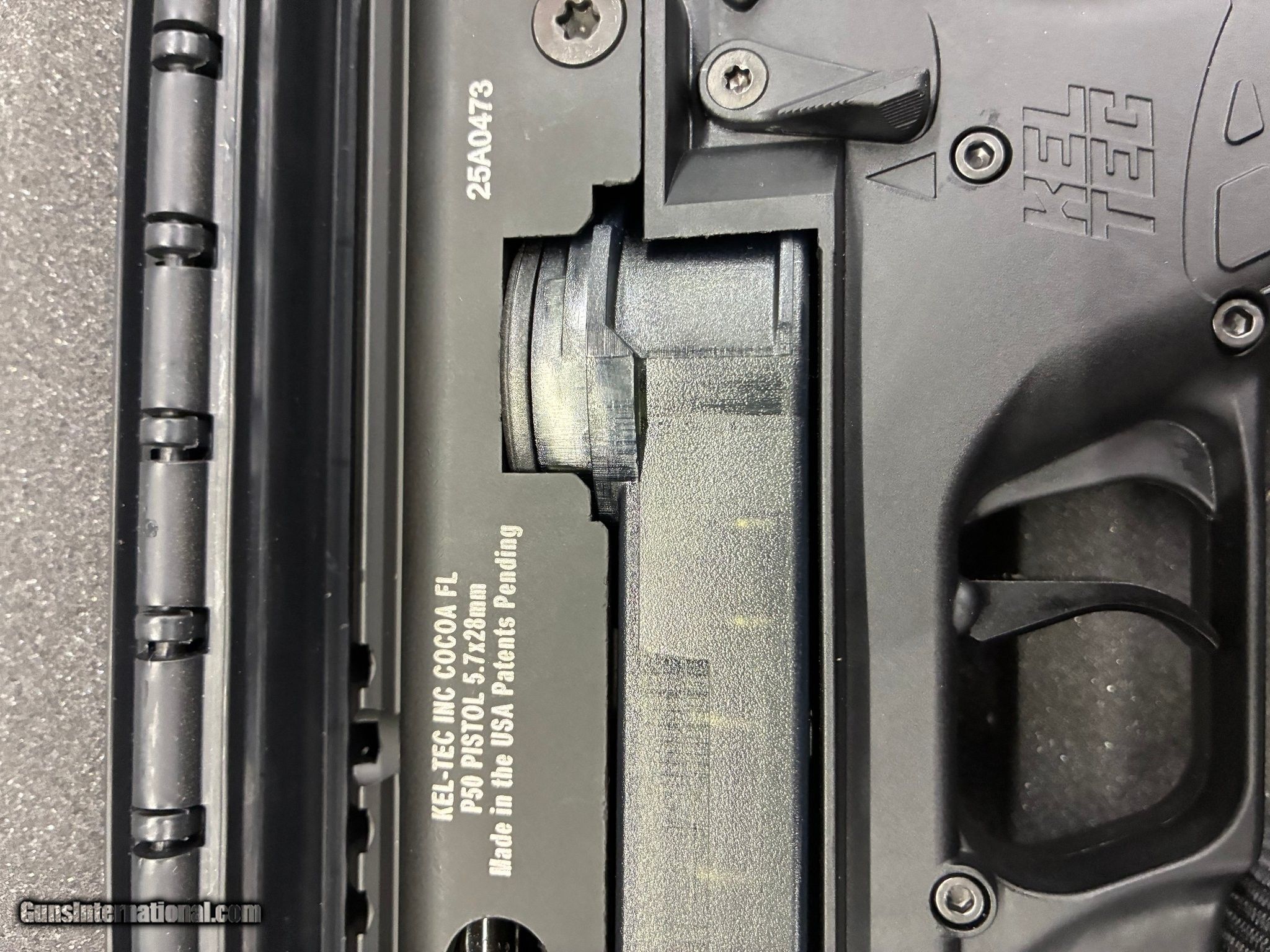 Description: Guns Listing ID: 594140 This used Kel-Tec P50 with a Strike Industries folding brace offers a futuristic, lightweight platform built around the FN-style 50-round magazine system. The added folding brace improves stability and makes the setup more compact for storage and transport. Typical used examples may show minor handling wear but remain fully functional, offering a unique blend of modern design and practical ergonomics for enthusiasts and collectors. Comes with 2 mags and the factory hard case. Manufacturer: KELTEC Model: P50 Caliber Info: 5.7X28MM Condition: Used - Non-Certified Barrels: 9.6" BARREL Action: SEMI AUTOMATIC Finish: black Price: $599.99 Contact Seller |
