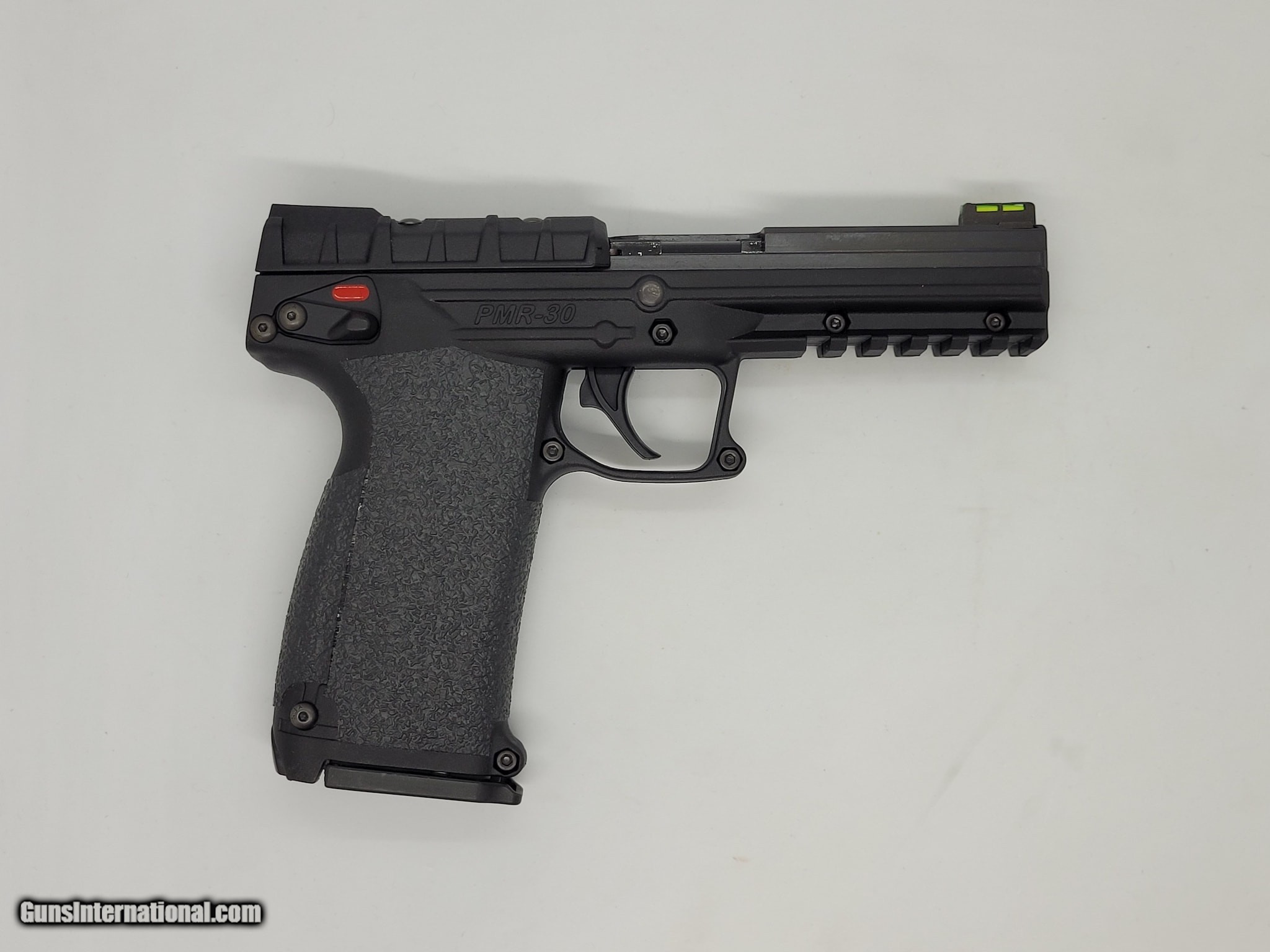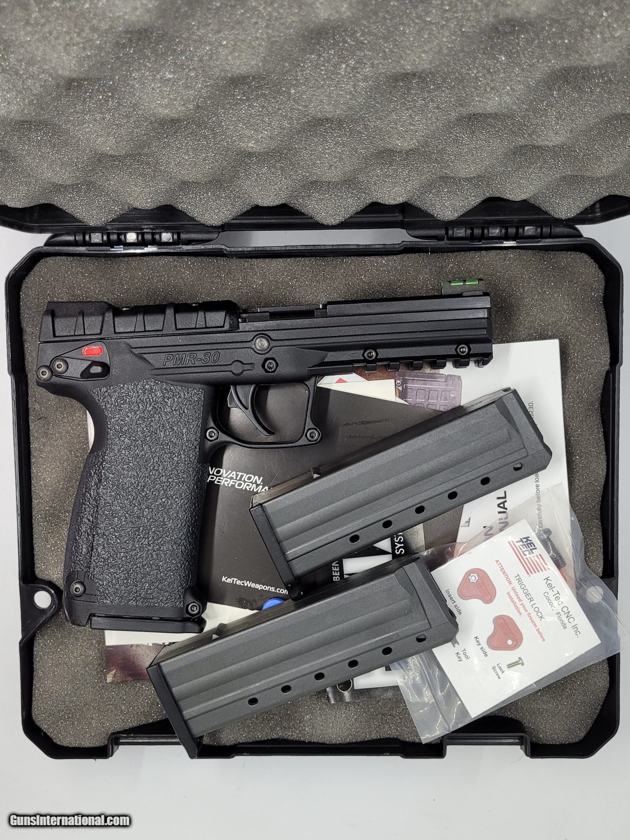Description: Guns Listing ID: 690605 The Kel-Tec PMR-30 .22 WMR Pistol features a large 30-round, double-stack magazine and has a hybrid blowback/locked-breech system that allows use of a wide range of ammunition. A single-action trigger features a 4 - 6 lb. pull and an over-travel stop. Manual, thumb-operated safety. Fiber-optic sights. Features and Benefits Polymer grip Trigger with a 4 - 6 lb. pull and an over-travel stop Semiautomatic single-action design with a 30-round, double-stack magazine that fits completely in the grip 4.3\" barrel with a blued finish Hybrid blowback/locked-breech system lets you use a wide variety of ammunition and switches between them depending on the pressure of the cartridge Slide locks back after the last shot Fiber-optic sights Thumb-activated, ambidextrous safety lever Manual slide lock lever Specifications Manufacturer warranty - parts: Lifetime limited Action: Single Metal finish: Blued Product weight: 13.6 oz. Activity: Shooting Barrel length (in.): 4.3 Handedness: Ambidextrous Product Type: Pistol Manufacturer warranty - labor: Lifetime limited Product length (in.): 7.9 Front sight: Fiber optic Magazine capacity: 15+ Manufacturer warranty - general: Lifetime limited Rear sight: Fiber optic Caliber: .22 WMR Rifle Ammo Type: Rimfire SOLD Manufacturer: KELTEC Model: PMR-30 Caliber Info: .22 WMR Condition: Used - Non-Certified Barrels: 4.3" barrel |