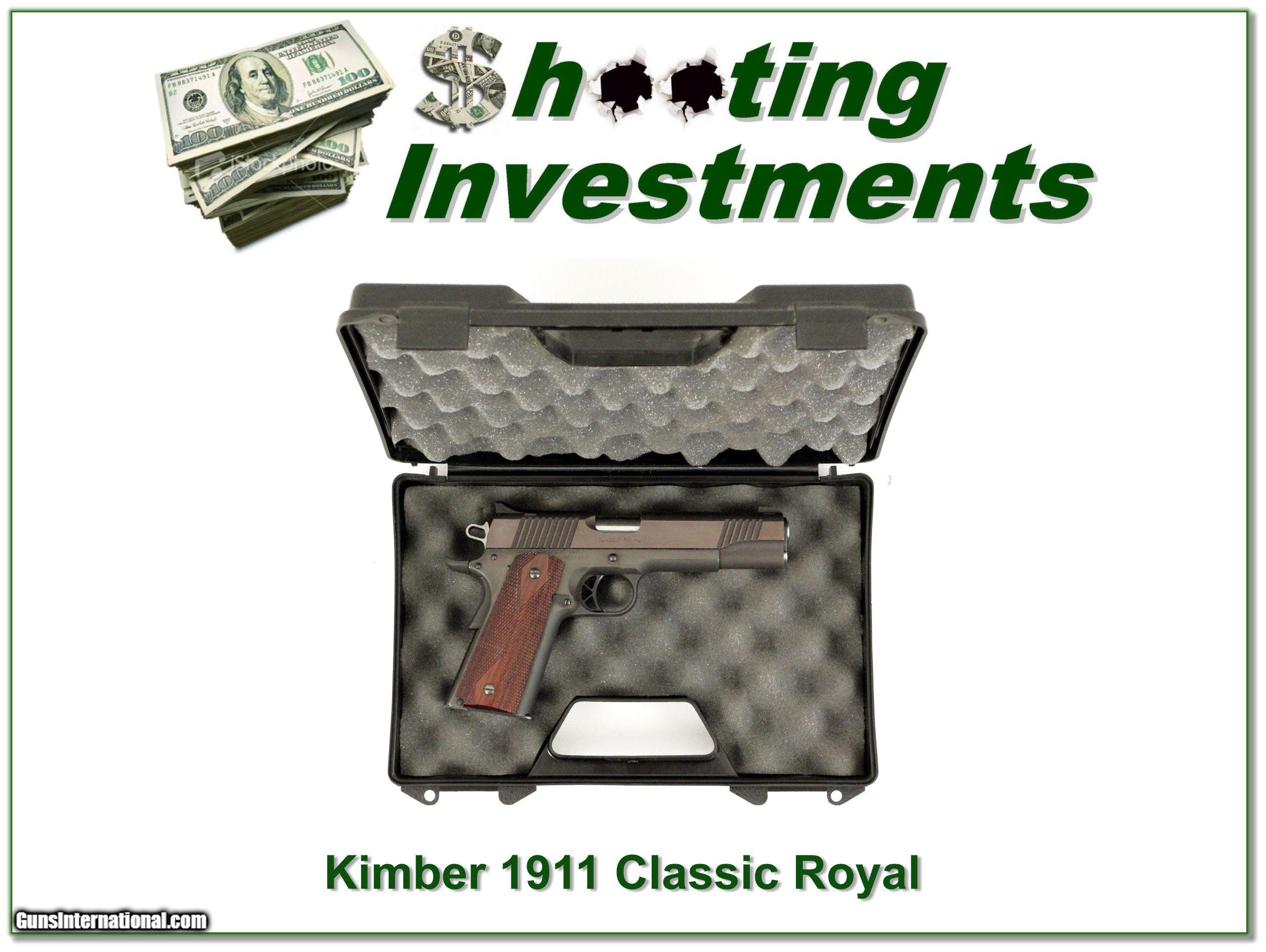 Description: This is an excellent condition Kimber 1911 Royal 45. If fired, not more than a few rounds. I see no marks. I am selling this one on consignment and as such, lay-a-way can’t be used. It does of course have the standard 3-day inspection. Shipping and insurance is $29. Please email me with any questions or larger pictures. (Consign your quality firearms with Shooting Investments for only 10%! Let me know if you have any you would like to sell!) 17-0639 Payment: Payment is by Money Order, Cashiers Check or Personal Check. I can now also accept MasterCard and Visa with a 3% convenience fee. PayPal can be used for some items but never firearms. Please let us know if you would like to pay via PayPal. Shipping: The shipping charge will be listed in each description. It is $39 for most long guns and $29 for most handguns. Some heavy guns or those insured for over $2000 will be higher. Shipments to Alaska and Hawaii are higher because air shipment is required. Most firearms are shipped on Tuesday and Thursday and usually in 5 days of receipt of payment. We package all shipments carefully and insure them. For long guns you can purchase a new Plano case for $19. They now cost us $22 when buying 100 at a time. Optics are shipped Priority Mail and most other non-firearm shipments are shipped First Class. Returns: Our return policy is simple. If for any reason you are not pleased with your purchase, you may return your item for a full refund of purchase price. Ammunition cannot be returned. It is important to us that you are happy. Guns cannot be fired or dissembled before returning them and they must be returned in the same condition as received. Notification of a return must occur with-in 3 days of receipt at your dealer. Shipping, convenience and dealer fees are not refundable and are the responsibility of the buyer. Lay-a-way: If needed, we offer a 60 day lay-a-way option on most firearms. It is 1/3 now, 1/3 in 30 days and 1/3 in 60 days. Lay-a-way firearm sales are final and if not completed the first payment cannot be returned. Consigning your firearms with Shooting Investments: We will help you get top dollar for your firearms. While most local guns shops charge 20% or more, our fee is only 10% with a minimum of $75. At your local gun shop it might take months to sell. Selling on-line provides instant access to thousands of interested buyers. You won’t find any other on-line dealer willing to sell your firearms for only 10% or listing every gun on 3 separate s. Selling through an House typically costs the seller 15% and the buyer an addition 15% (so 30%) and you have to wait several months to sell and longer to receive funds. If properly priced, we will sell your firearms in a few weeks. Send us an email or give us a call and we’ll explain how easy it is for you to get top dollar. Trading: Trading for use is really just buying your gun to re-sell. If you have a gun you want to trade, please email a picture and we will let you know what we can give or it. You will always get more if we sell it for you on consignment. Help for California Buyers: We are happy to ship to California. It is the buyer’s responsibility to make sure any item you buy is legal in your state. We are also happy to help with your purchase of a firearm from someone other than us. If you see a gun you would like to buy but the seller can’t or won’t ship to California they can ship to use and we’ll then ship it to your California dealer. The cost for this service is only $30 + shipping. Let us know if we can help! SOLD |
