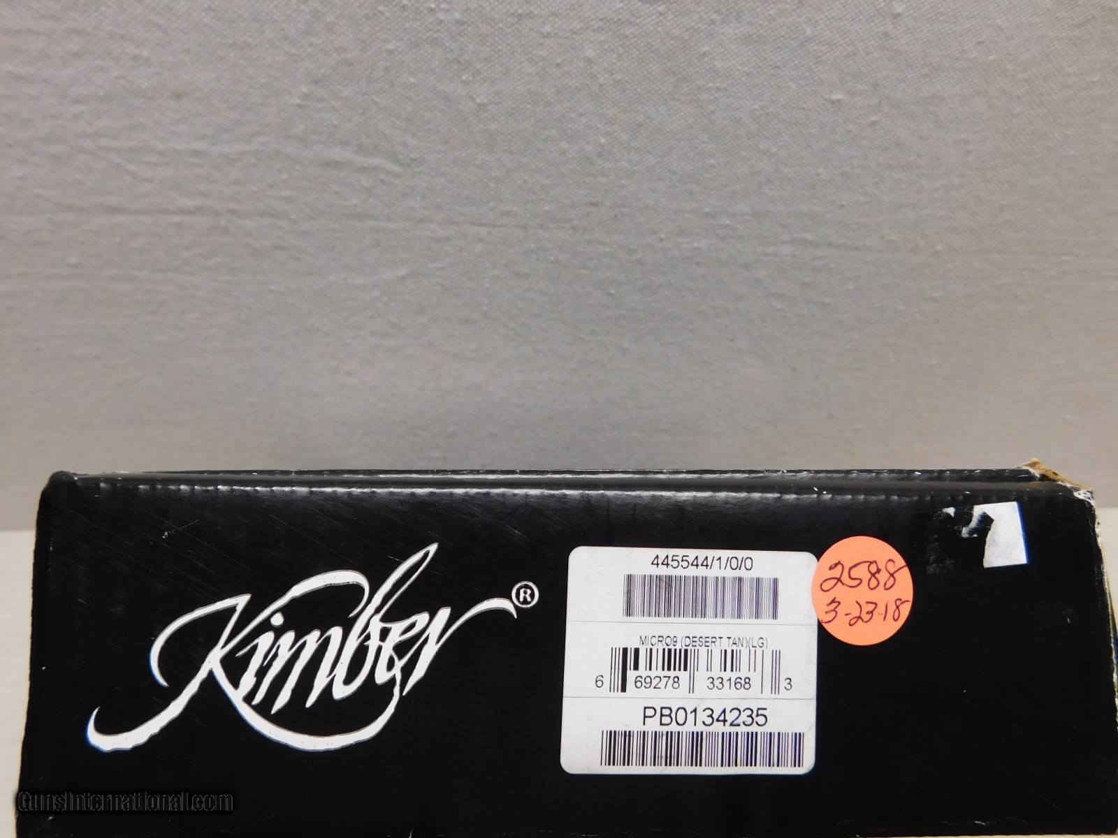 Description: Kimber Micro 9 Pistol,9MM,3" Barrel,Crimson Trace Grips,Desert Tan,Appears unfired With Box and Papers, 2 Magazines, Soft Case!! Store hours Thurs-Fri-10AM-8PM Sat-9AM-12PM All Other times please leave a message,Thank You! No California Sales Lower 48 State Sales only Pa. Residents 6% Sales Tax applicable Shipping $ 35.00 SOLD Handgun Caliber: 9x19mm Parabellum (9mm Luger, 9x19mm NATO) Manufacturer: Kimber Model: Micro 9 Pistol Serial Number: PB0134235 Barrel Length: 3 |