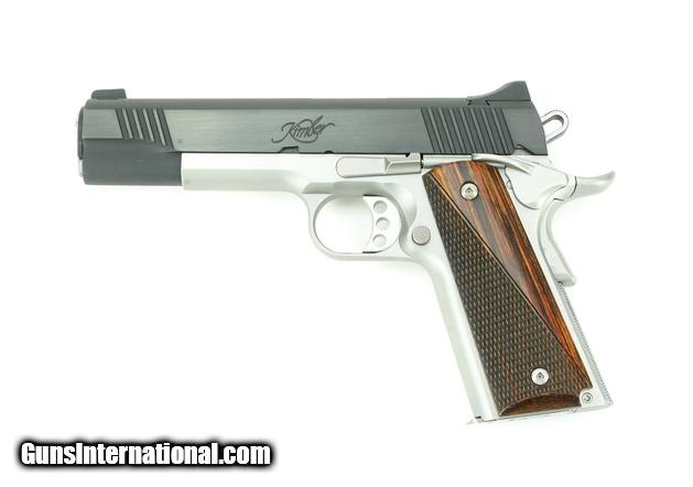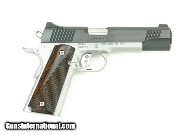 Description: Kimber Custom II .45 ACP Caliber Pistol. Two tone model with custom wood grips. Excellent condition with box.