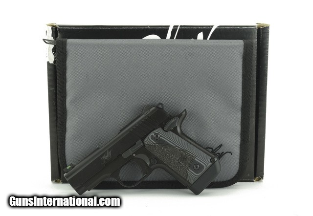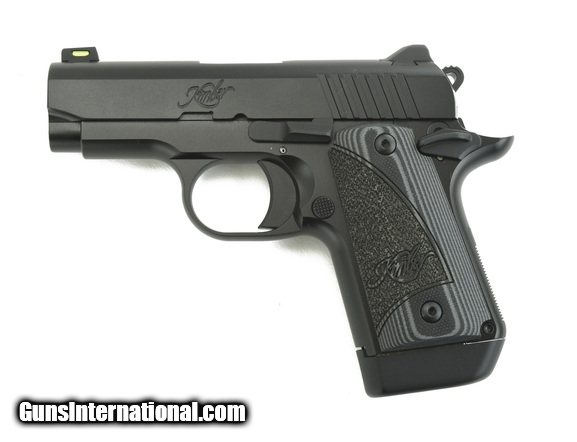 Kimber Micro 9 9mm caliber pistol. Pocket pistol with black finish. Has fiber optic sight and extended magazine. Excellent condition with box.
