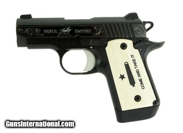 Description: Kimber Micro 9 Texas Edition caliber pistol. Limited edition with engraving and faux ivory grips. NEW