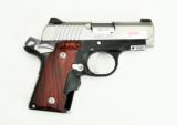 Kimber micro CDP .380 caliber pistol. Two tone model with melt down edges and laser grips. New.