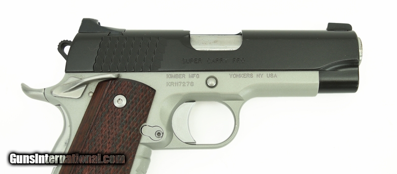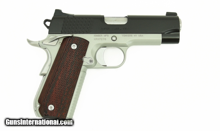Description: Kimber Super Carry Pro .45 ACP caliber pistol. 2-tone model with alloy frame, rounded heel, ambi safety, and box in excellent condition. SOLD |