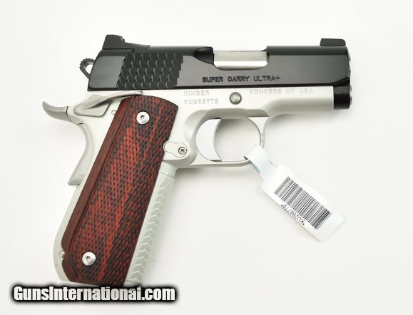 Kimber Super Carry Ultra + .45 ACP caliber pistol. 3” model with full size grip, night sights and ambi safety. New