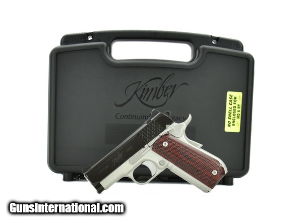 Description: Kimber Super Carry Ultra .45ACP caliber pistol. 3” custom carry gun with a full size grip. It has a 2-tone finish, night sights, and a round butt grip frame. It comes with a box and is in excellent condition.
