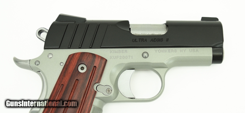 Description: Kimber Ultra Aegis II 9mm caliber pistol. 3” subcompact with night sights, 2-tone finish, and thin grips. New SOLD |