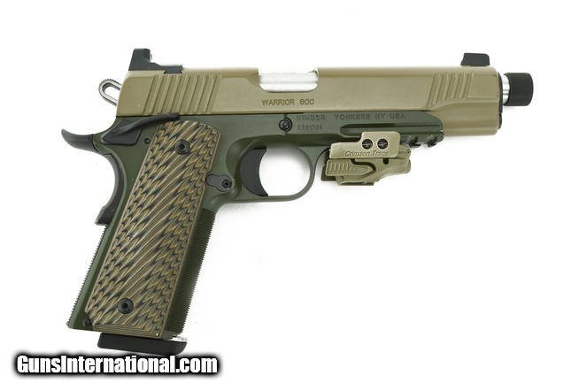 Kimber Warrior SOC .45 ACP caliber pistol. Tactical model with raised night sights, threaded barrel and laser in excellent condition with box.