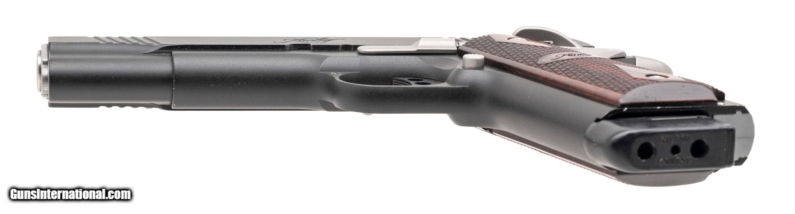 Description: "SN: K683580. Modern production, .45 Auto with a 5"" barrel. Bore is bright with strong rifling. Custom alloy frame 1911 style pistol with stainless accents and checkered wood grips. Custom work by Houston's renowned pistolsmith Eddie Jimenea. Custom features includes tuned action, trigger job, and a perfectly fitted safety control. Overall condition is near excellent. Price: $2,095.00 Contact Seller |