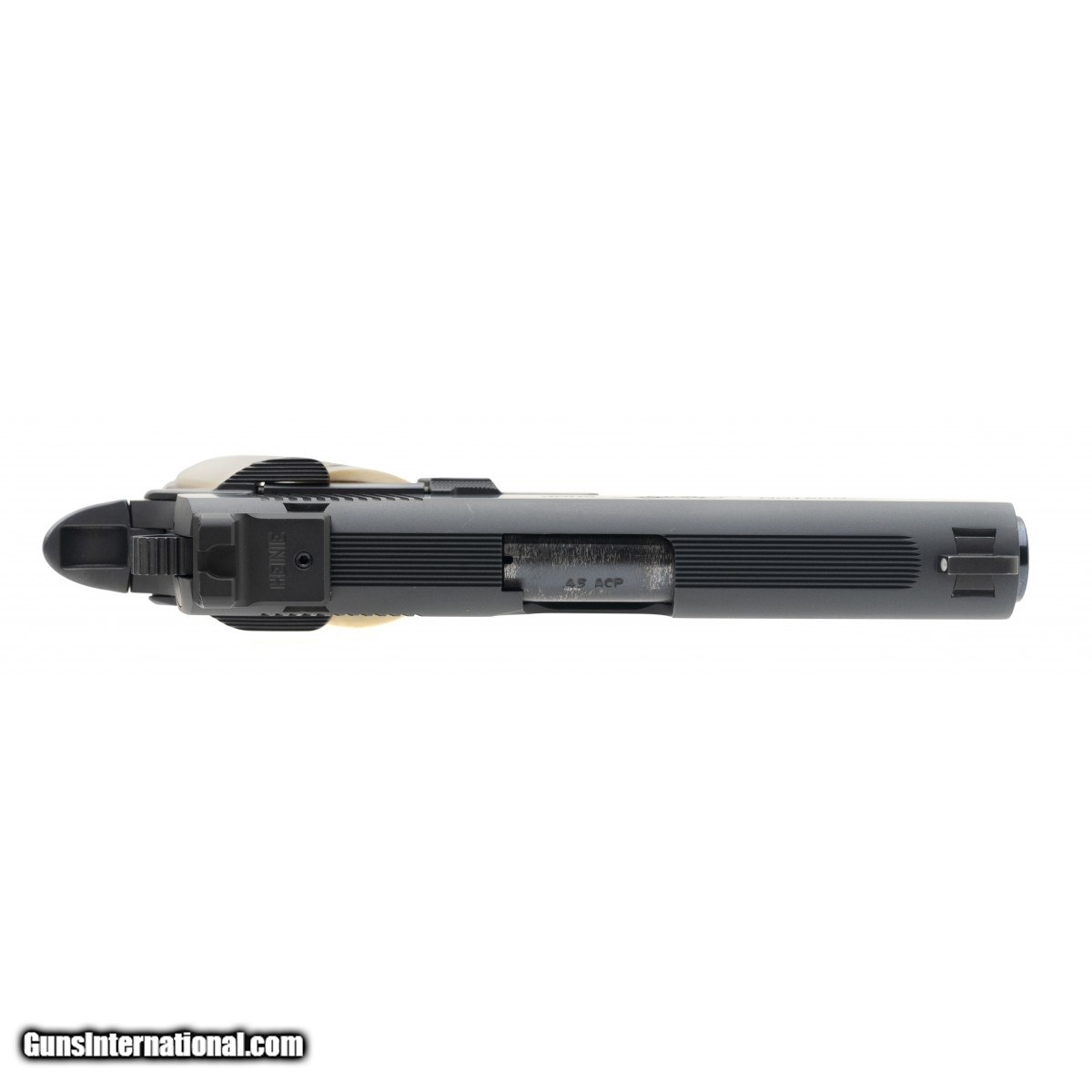 Description: " SN: KR242225, Modern production, .45 ACP with a 4"" Barrel. Bore is in excellent condition. Commander size 1911 with G10 Ivory grips, charcoal blue finish and Heinie rear sight and Tritium front sight. Overall excellent condition. SOLD |