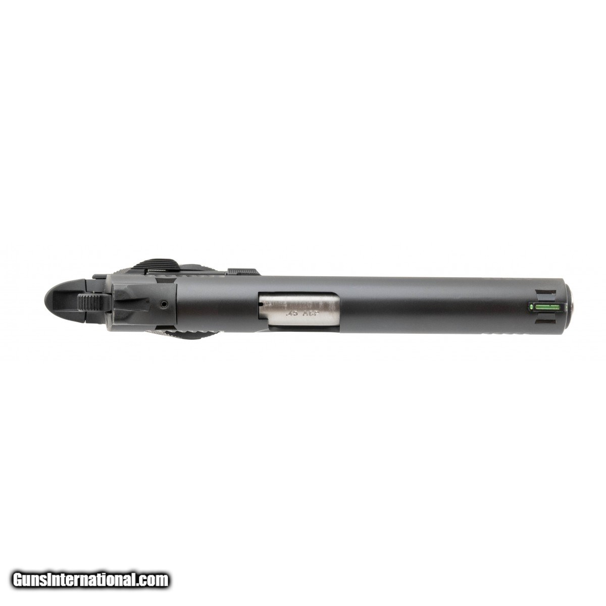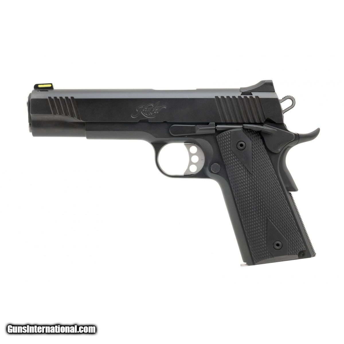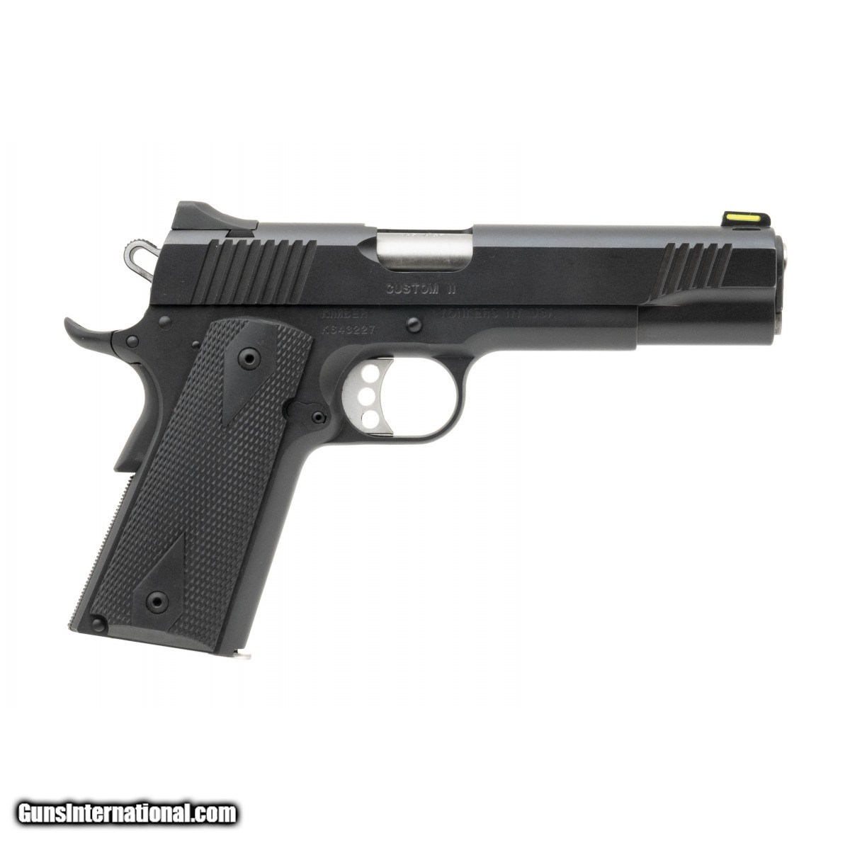 SN: K64322. Full Size 1911 with 5"" barrel, front serrations, fiber optic front sight and full length guide rod. Overall excellent condition. Comes with box.