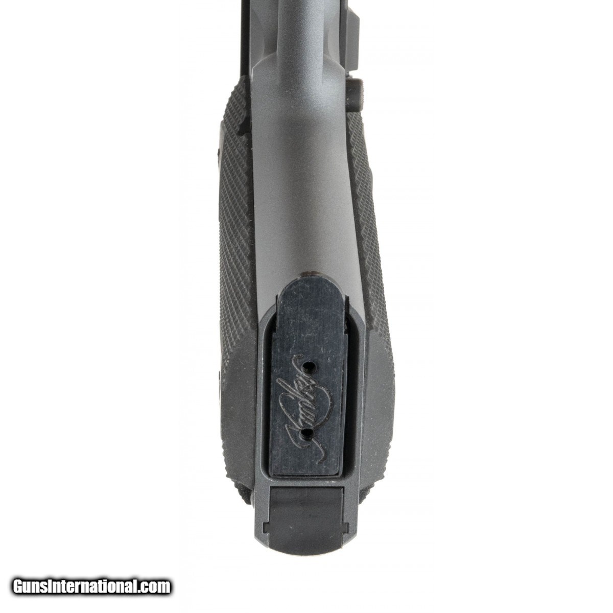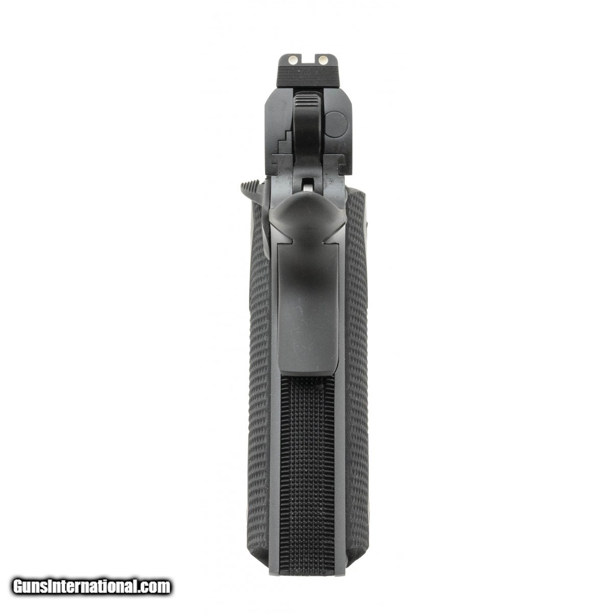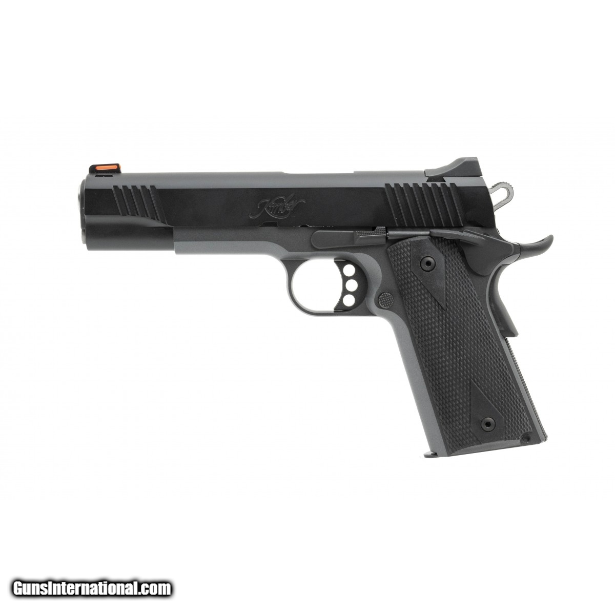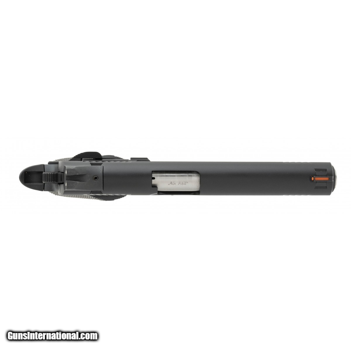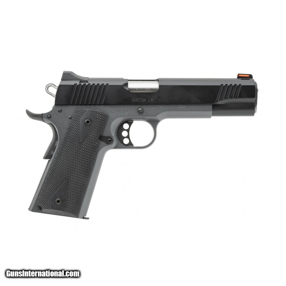 SN: K798602. Lightweight 1911 pistol with 5 inch match grade barrel, rubber checkered grips, and fiber optic front sight. Overall excellent condition. Comes with box.