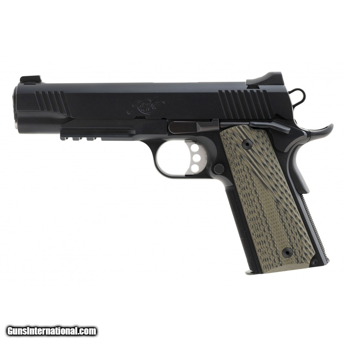 SN:K872286. 5"" all steel 1911 with G10 grips and night sights. Overall in excellent condition, with box, Wilson combat recoil spring, Ed Brown slide stop, safety and trigger pull kit.