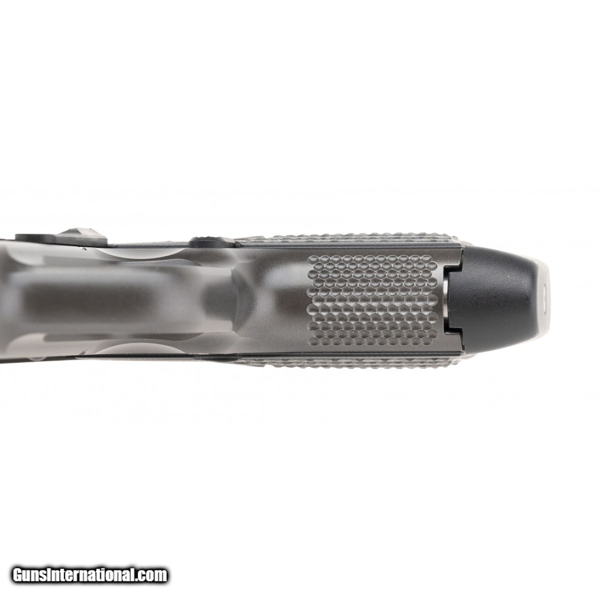 Description: " Custom shop model with two tone black and grey finish with Trijicon night sights and G10 grey grips with textured mag release. Comes with box and is excellent condition. SOLD |