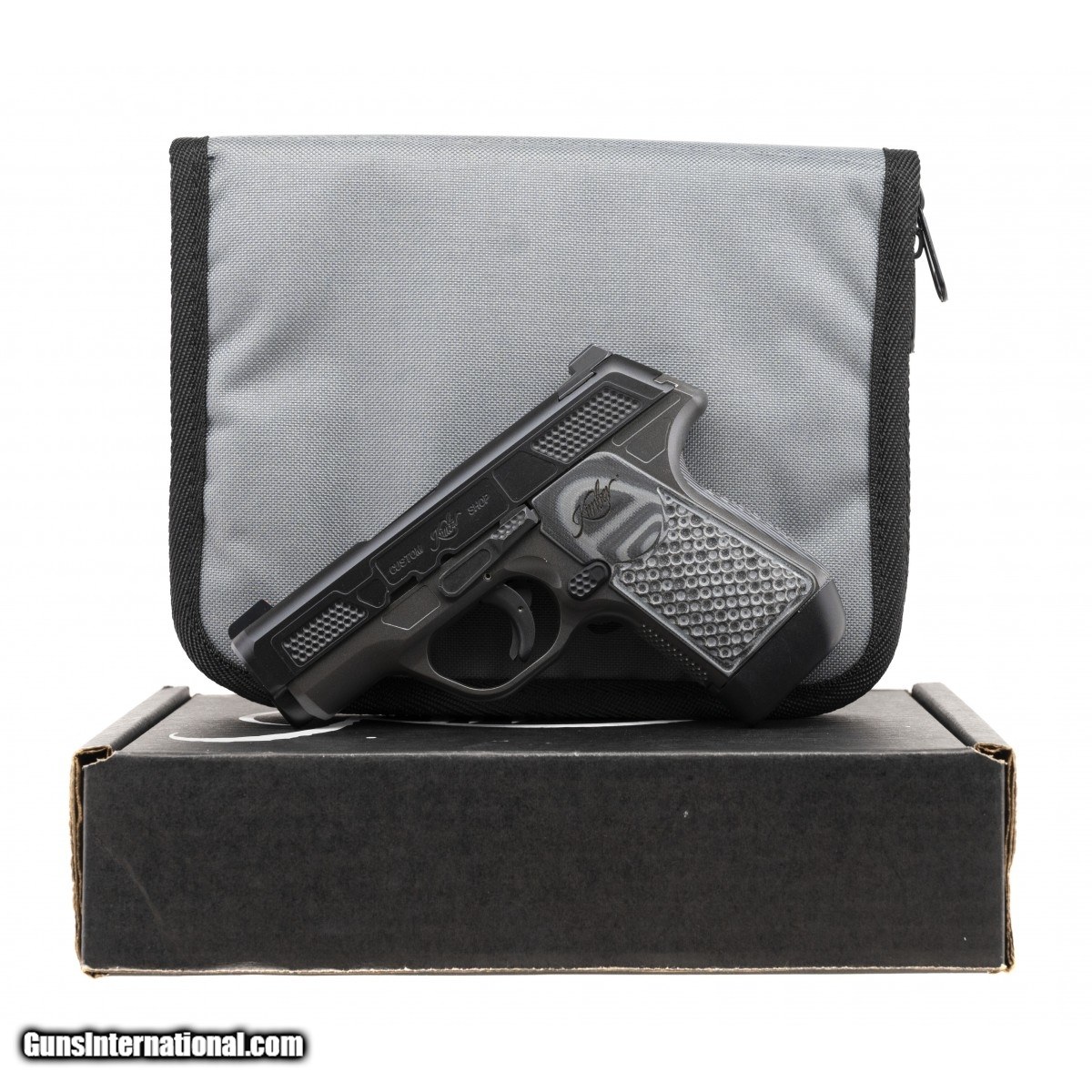 Custom shop model with two tone black and grey finish with Trijicon night sights and G10 grey grips with textured mag release. Comes with box and is excellent condition.