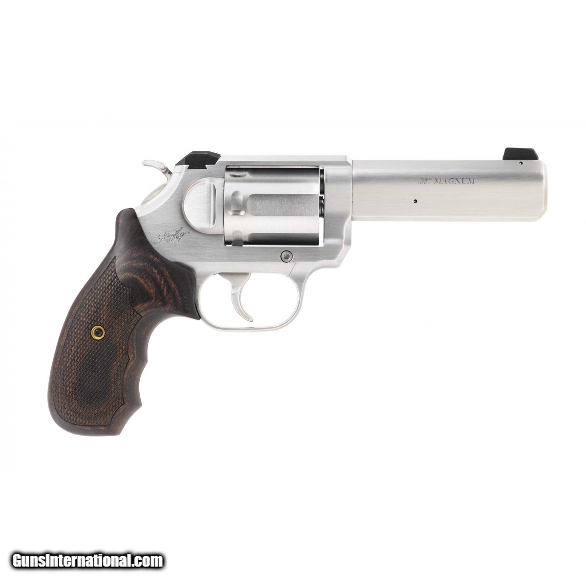 Description: " Combat model with 4"" barrel, three dot night sights, wood grips, stainless finish. Comes with speedloading strip. New.UPC:669278340319 SOLD |