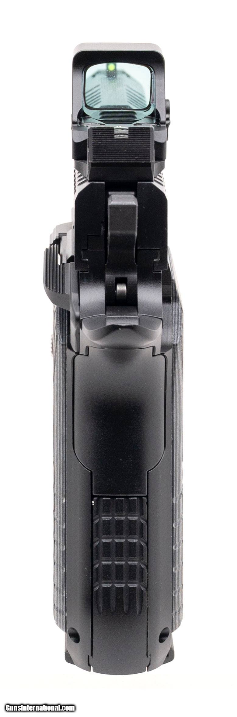 Description: "SN: SD001929. Modern production, 9mm with a 4.09"" fluted barrel. Bore is excellent. Single-action only alloy frame pistol with a Holosun 407K X2 red dot sight, fiber-optic front sight, co-witnessed rear sight, manual thumb-safety, matte black finish, and G10 grips. Includes 3 additional magazines, original range bag, and original box. Overall condition is excellent. Price: $1,249.95 Contact Seller |
