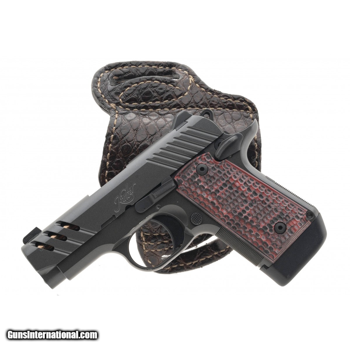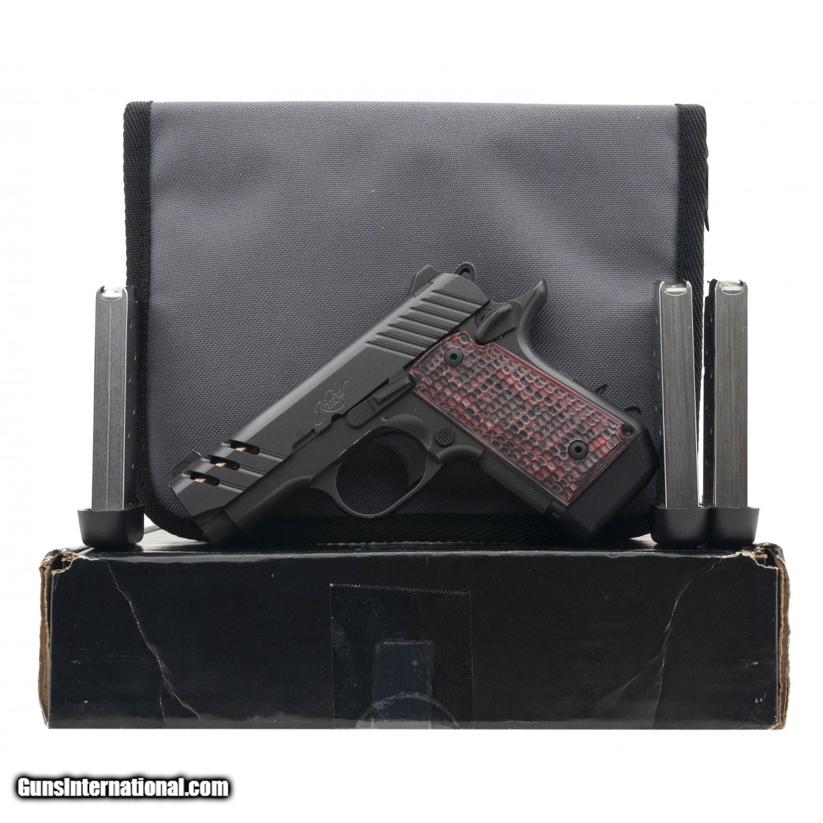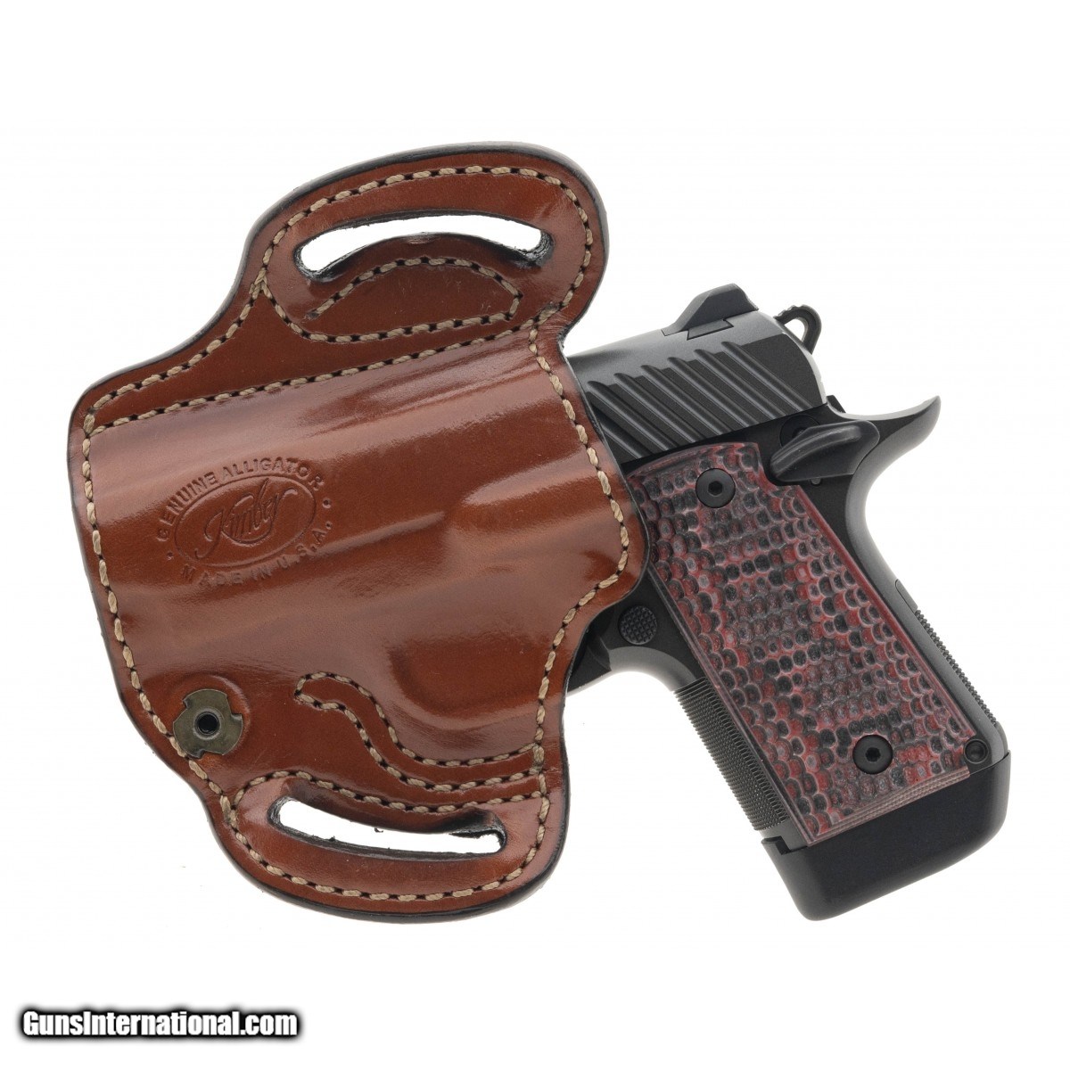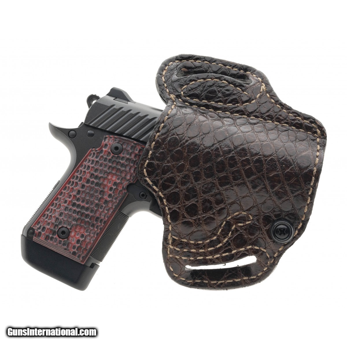 SN:PB0242825. Single action, single stack 3.1"" pistol with rose G10 grips, &, an alligator holster. In excellent condition. Comes in box with range pouch, &, three spare magazines.