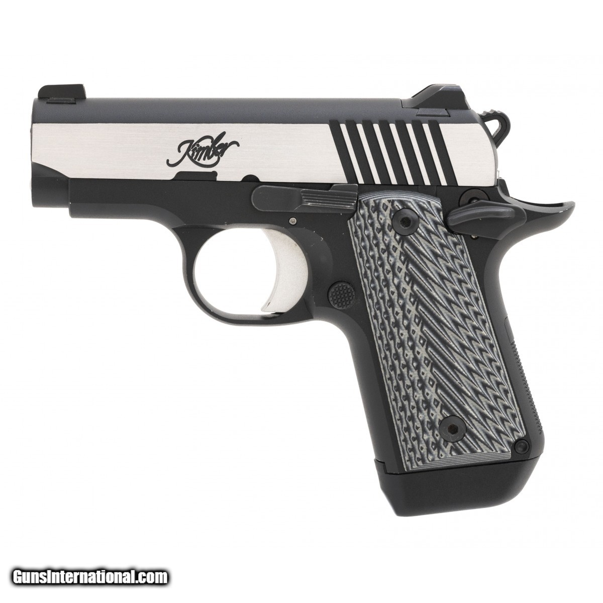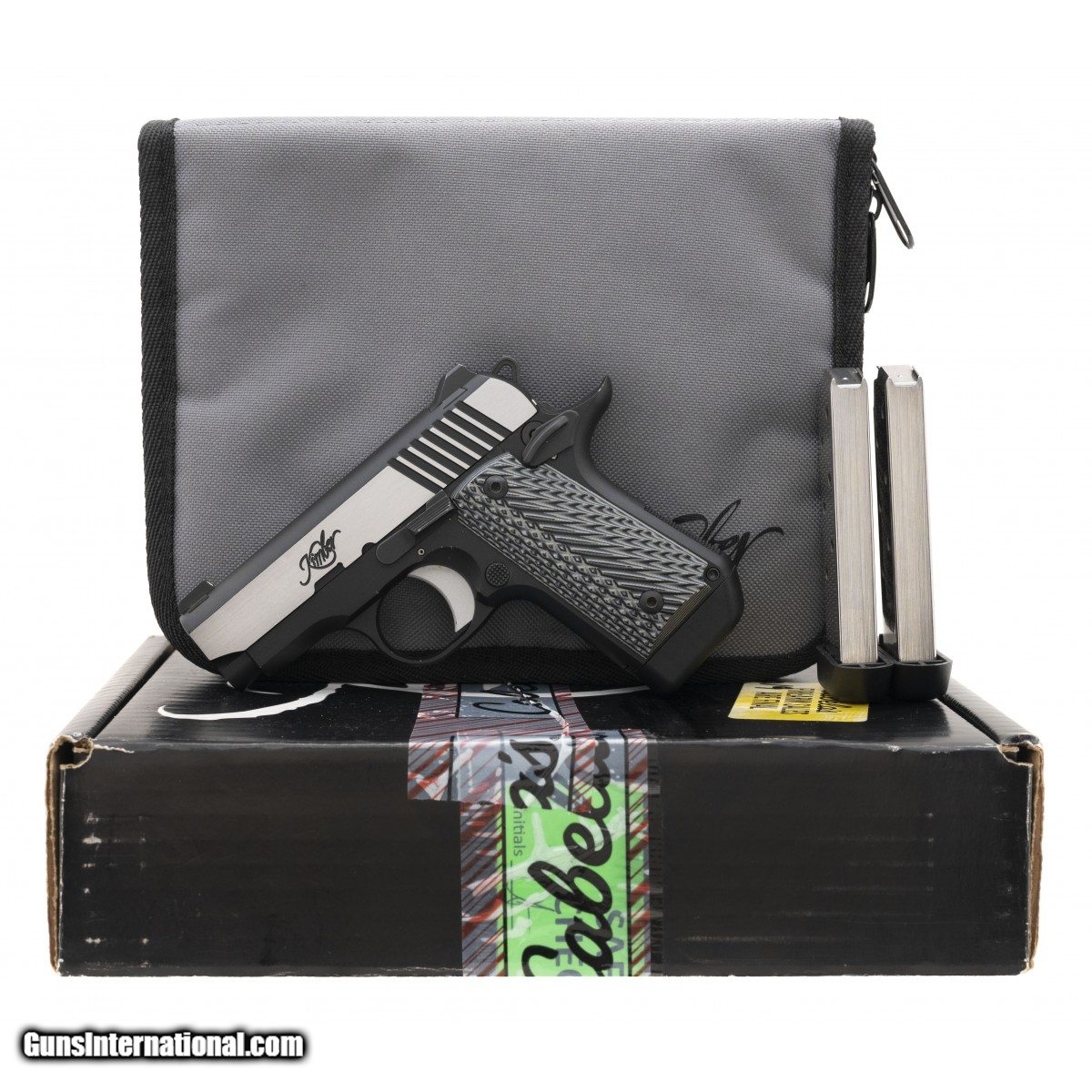 Description: " SN:P0083901. Single action two tone pocket pistol with G10 grip panels and a stanless curved trigger shoe. In excellent condition. Comes in box with range pouch, holster, & two spare magazines. SOLD |