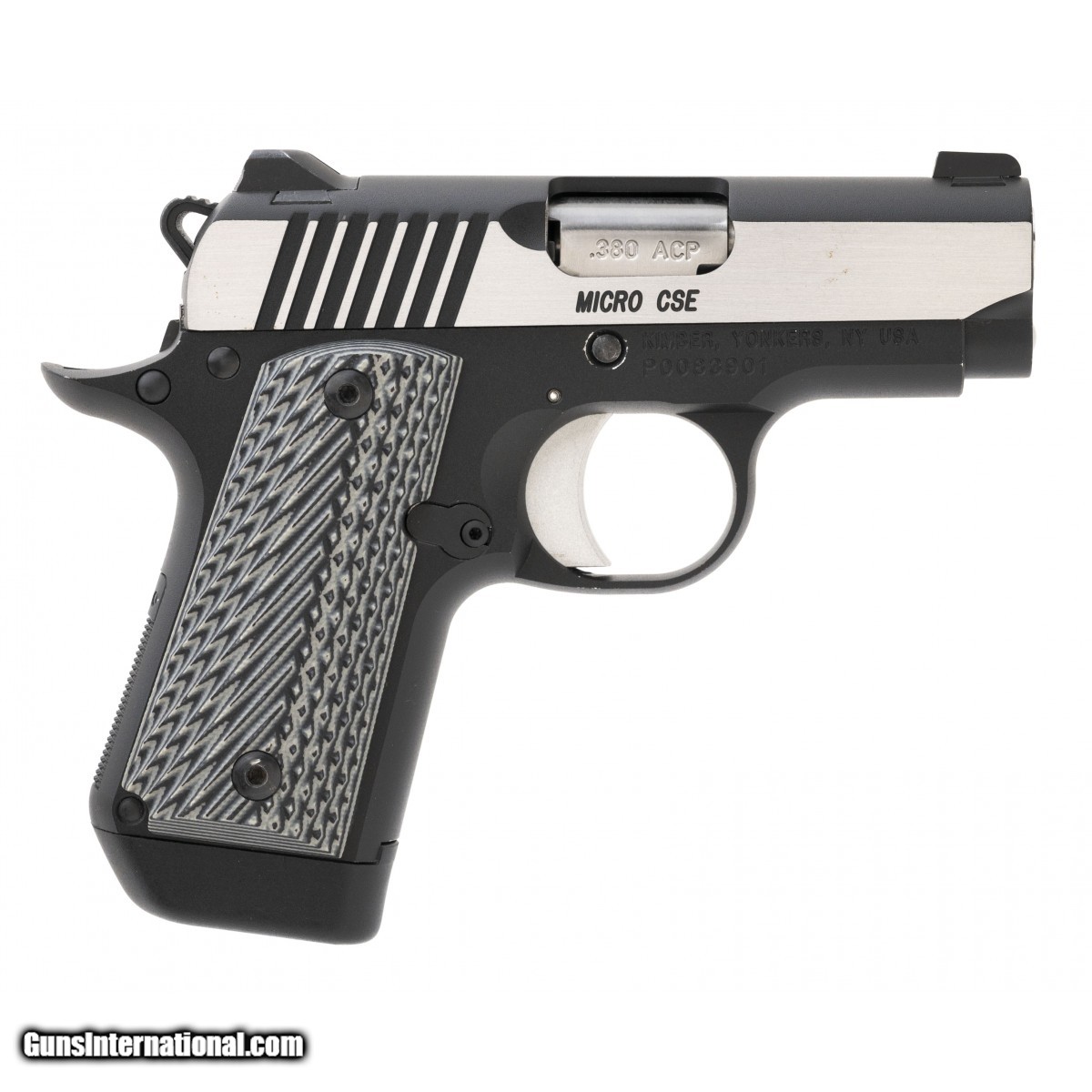 Description: " SN:P0083901. Single action two tone pocket pistol with G10 grip panels and a stanless curved trigger shoe. In excellent condition. Comes in box with range pouch, holster, & two spare magazines. SOLD |