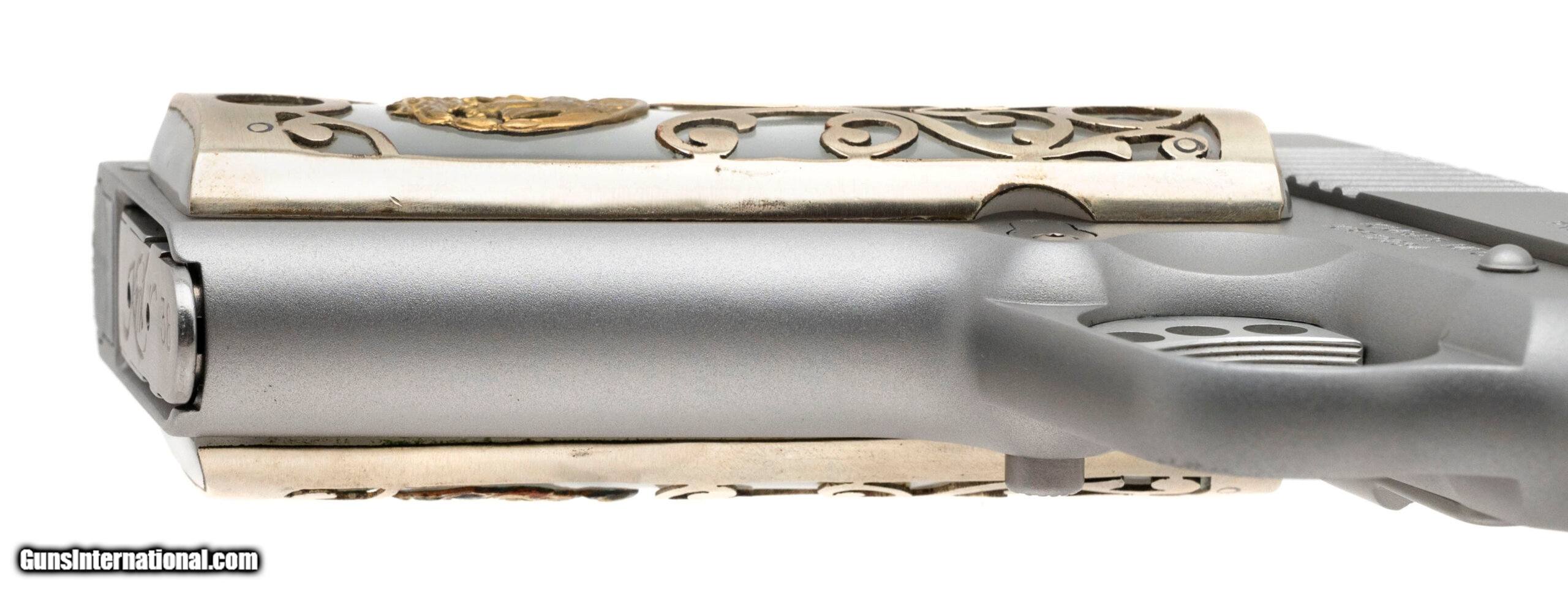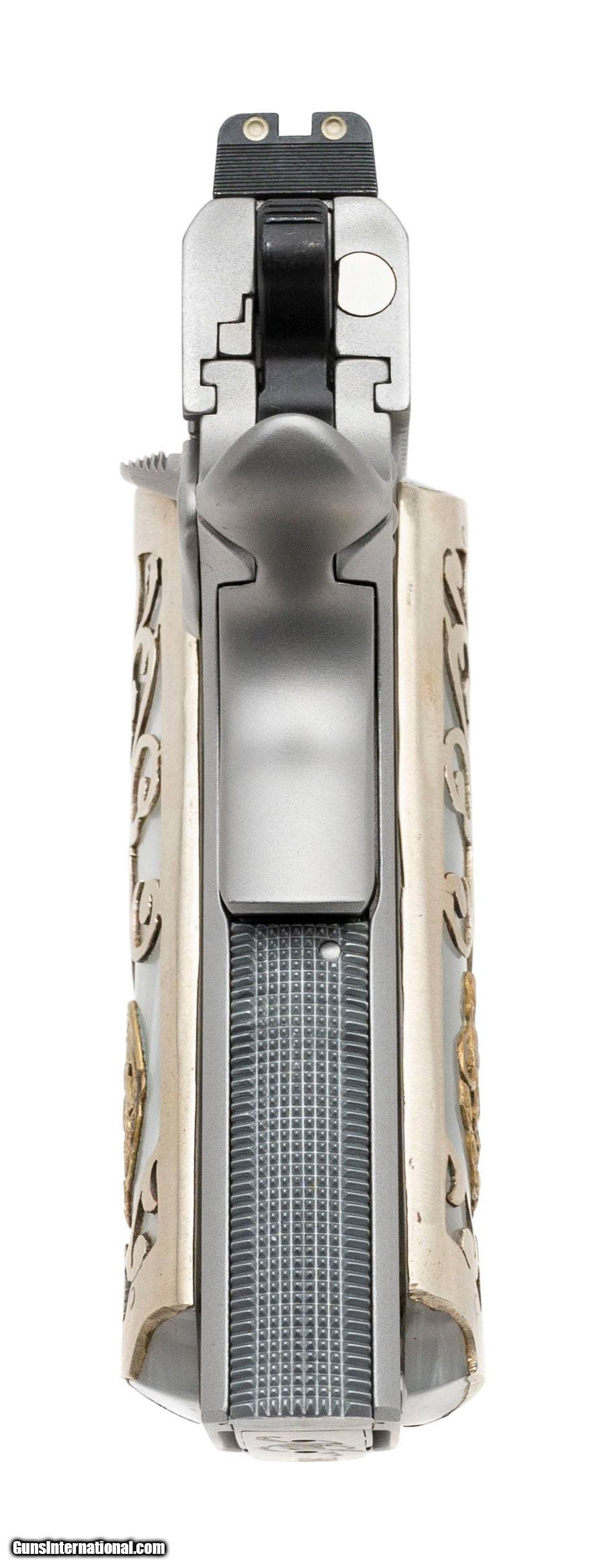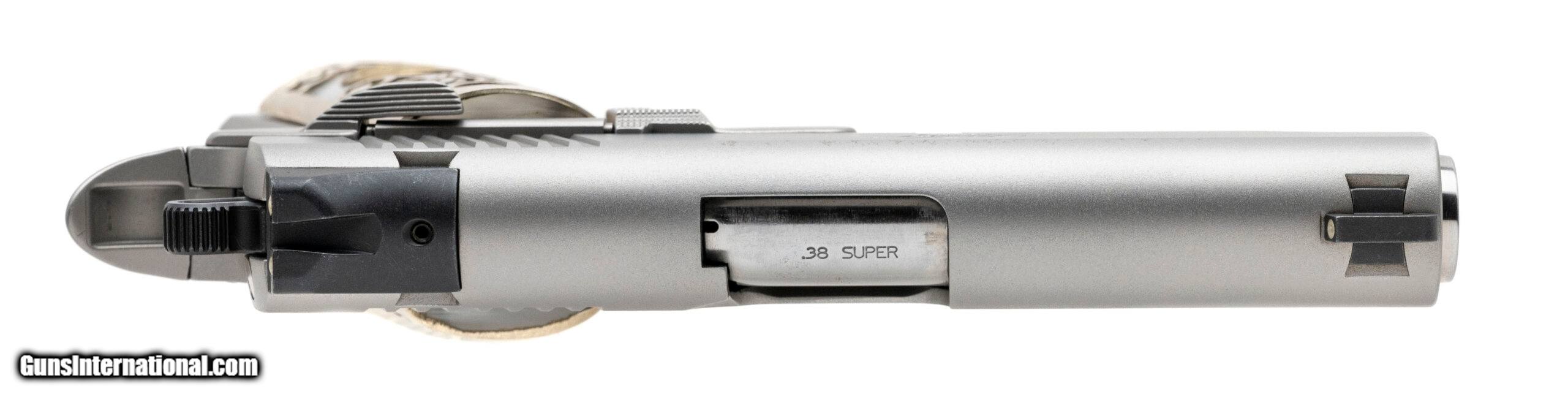 Description: "SN: KRF12234. Modern production. .38 super with a 4"" barrel. Bore is in excellent condition. Compact 1911 handgun. Finish and Mexican style grips are in very good condition. Overall condition is very good. Comes with case. SOLD |