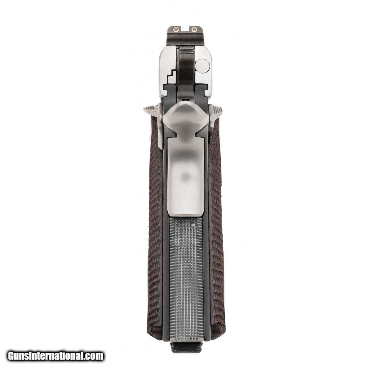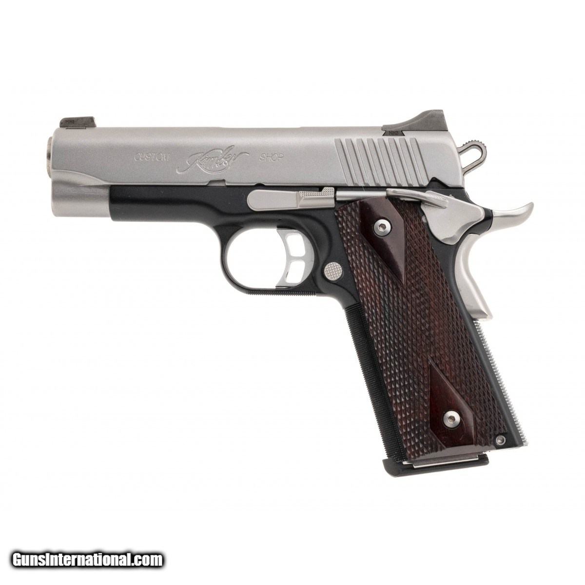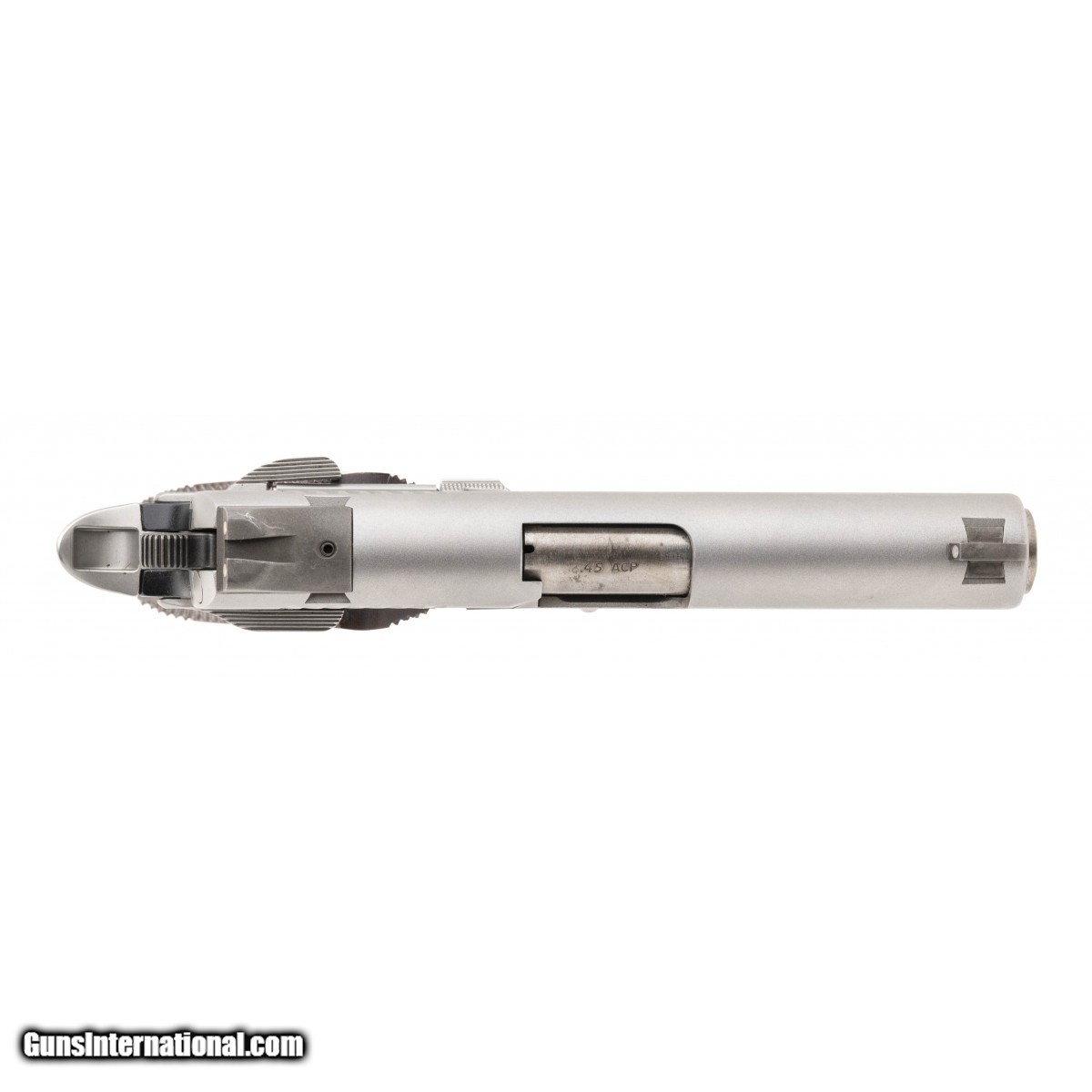 SN: KR44880. Modern production. .45 Acp with a 4"" barrel. Bore is in excellent condition. Commander size 1911. Brushed stainless slide and controls and blued frame for a two-tone finish is in excellent condition. Diamond pattern Grips in excellent condition. Has 3 dot night sights and ambidextrous safety. Overall condition is excellent.