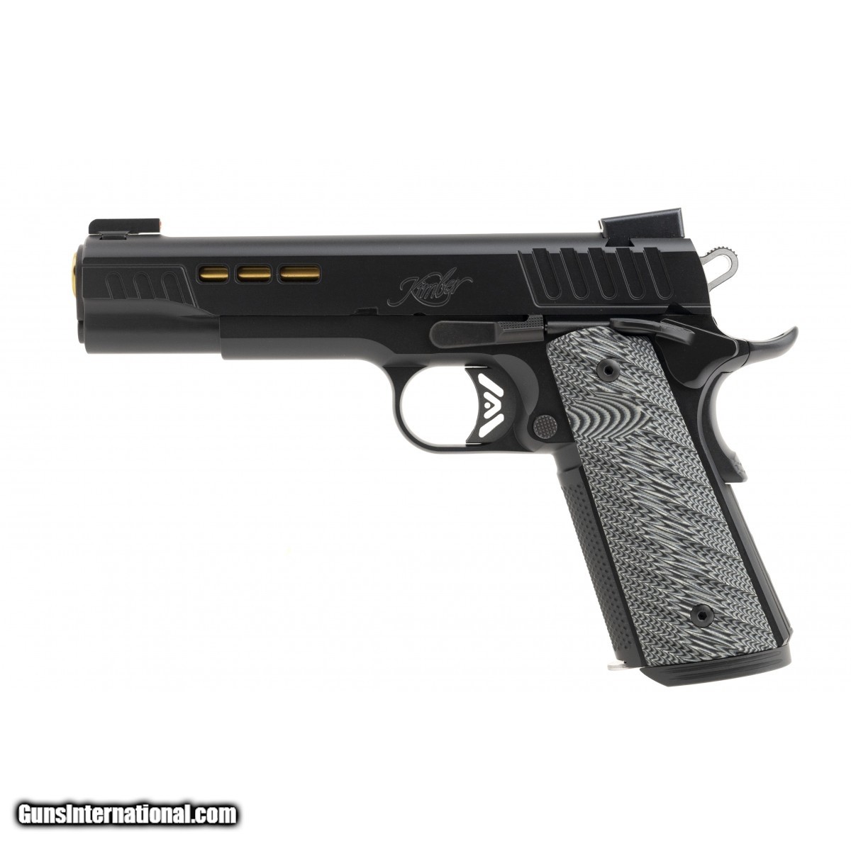 Full size model with slide cuts, magwell, fiber optic night sights, and grey grips. NEW. UPC:669278303833