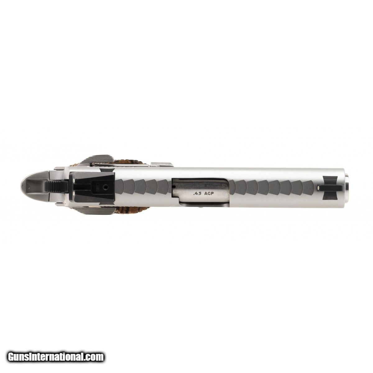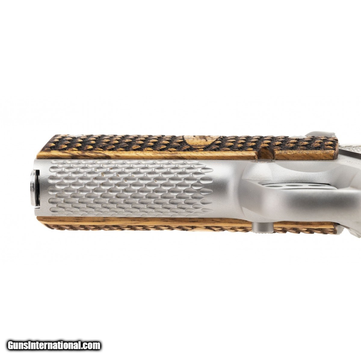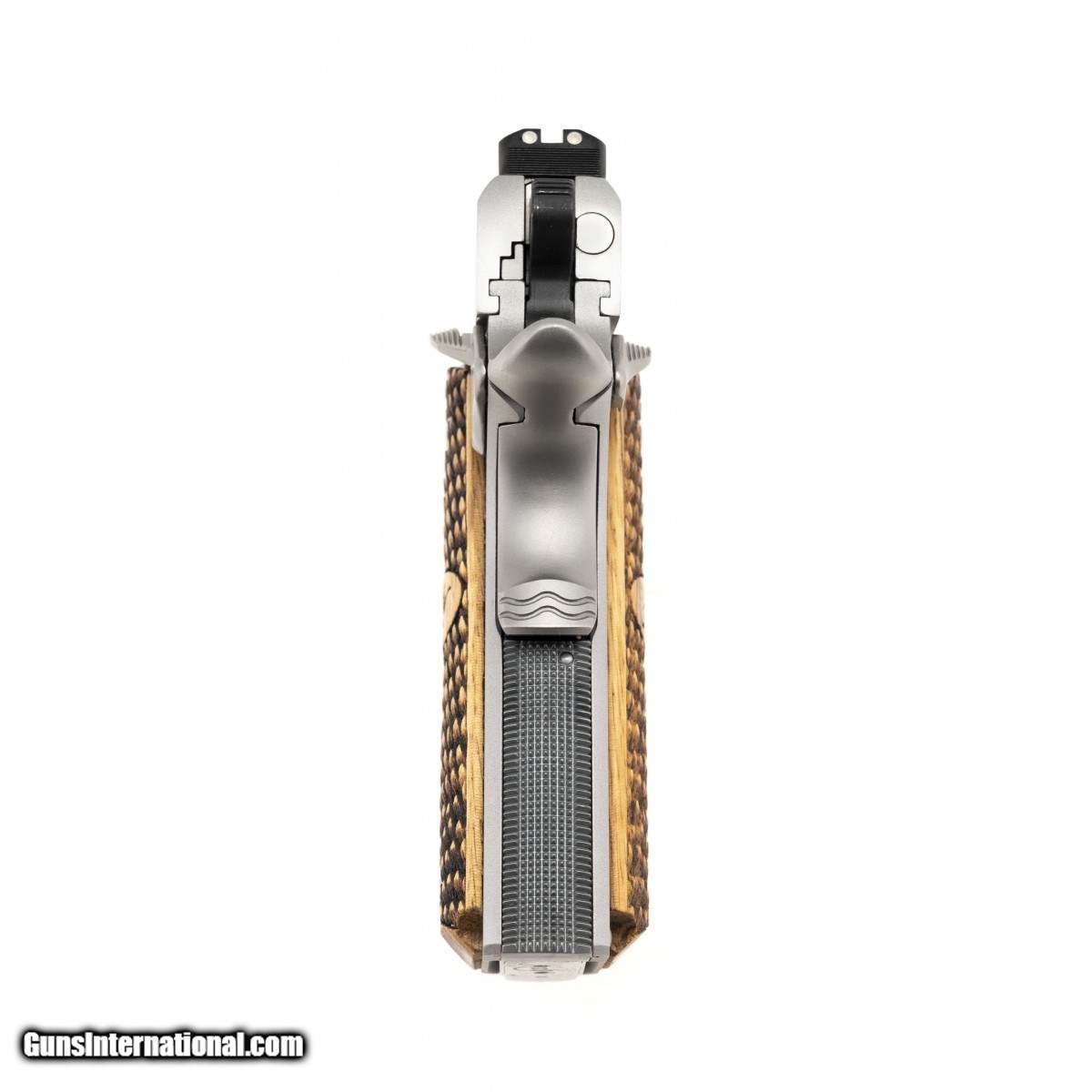 Description: " Stainless model with a 4"" barrel and unique ""Raptor"" serrations, grips and checkering. Night sights, Skeletonized trigger and hammer. Comes with box and is in excellent condition. SOLD |