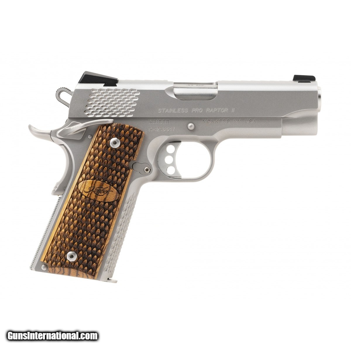 Stainless model with a 4"" barrel and unique ""Raptor"" serrations, grips and checkering. Night sights, Skeletonized trigger and hammer. Comes with box and is in excellent condition.