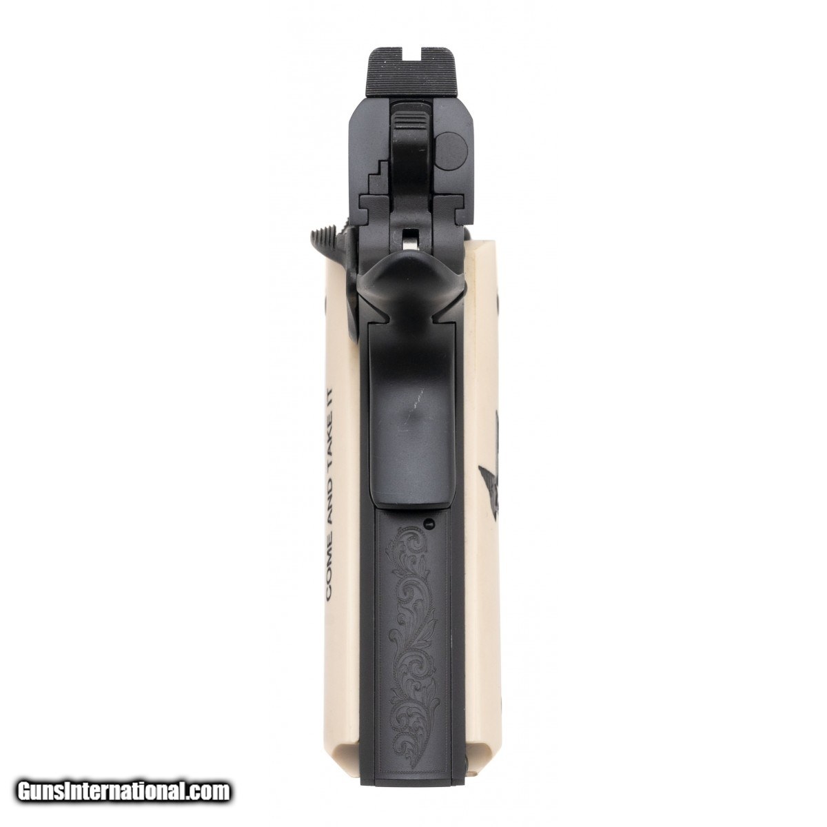 Description: " SN:TXEB00552. Modern production .45 ACP with a 5"" barrel. Bore is excellent. Special Texas edition 1911 with ""Come and take it"" grips. Overall Condition is excellent. Comes in box. Consignment. SOLD |